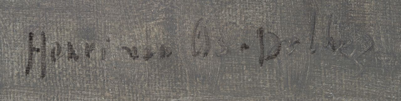 Hendrik van Os, beter bekend als Henri van Os-Delhez, werd aan de Ambachtsschool en de Tekenschool voor Kunstambachten in Amsterdam opgeleid tot decoratieschilder. Omdat het vrije schildersvak hem echter veel meer trok ontwikkelde hij zichzelf verder en nam schilderlessen bij de impressionist Arnold Marc Gorter. Van Os-Delhez schilderde een breed scala aan onderwerpen: bloemen, stillevens, landschappen, kerkinterieiurs en stadsgezichten in een losse, impressionistische stijl. Een voorkeur voor het gebruik van aardkleuren is kenmerkend voor zijn oeuvre. Hij woonde en werkte achtereenvolgens in Amsterdam, Laren en Blaricum (1928) en werkte ook veel in Parijs en Zuid-Frankrijk.
