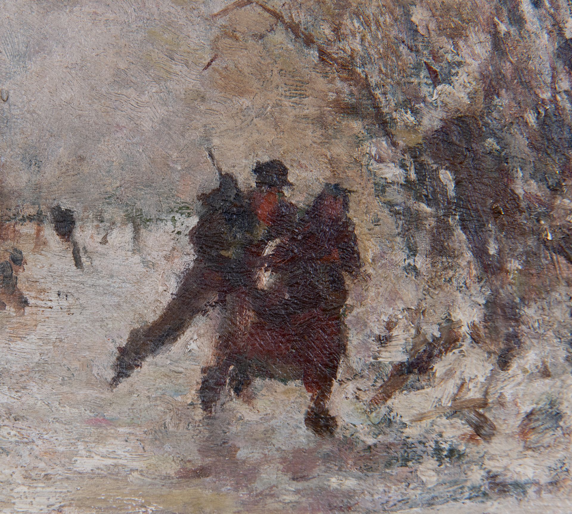 Henri van Seben kunstwerk • schilderij • te koop Schaatspaar in een winterlandschap