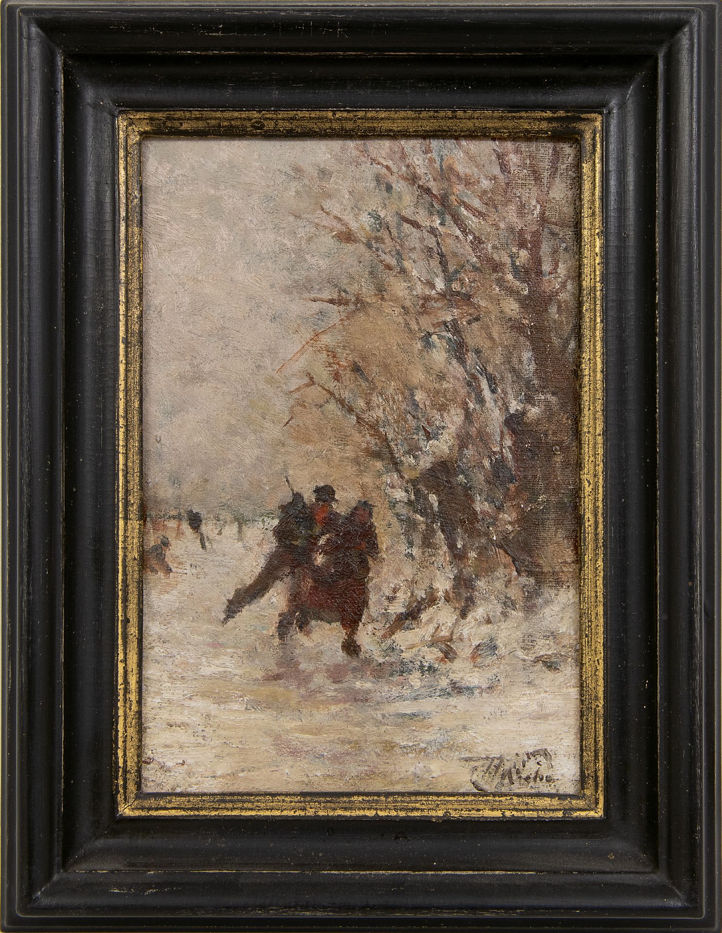 olieverf op doek op paneel 17,4 x 11,7 cm, gesigneerd rechtsonder