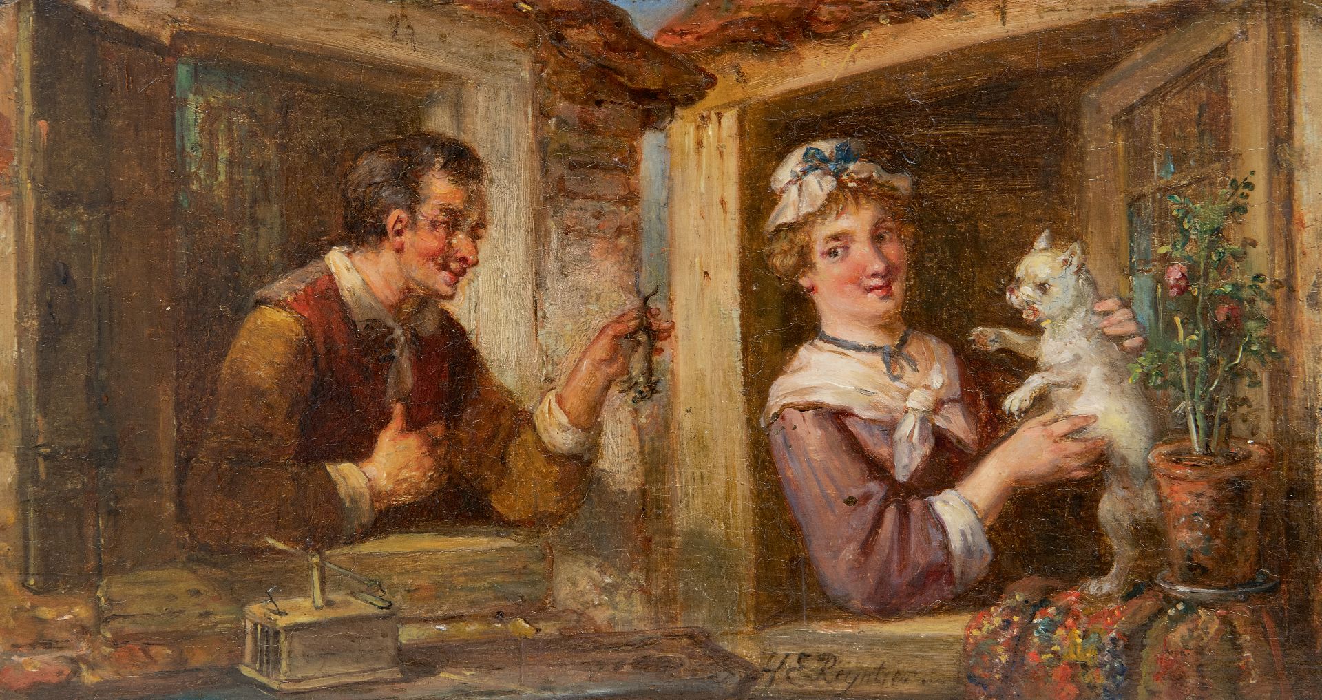 Henricus Engelbertus Reijntjens kunstwerk • schilderij • voorheen te koop Het kat-en-muisspel