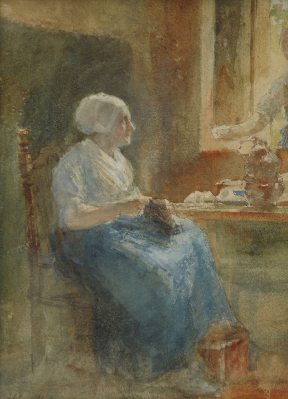 Henricus Joannes Mélis kunstwerk • aquarel • tekening • voorheen te koop Breiende vrouw