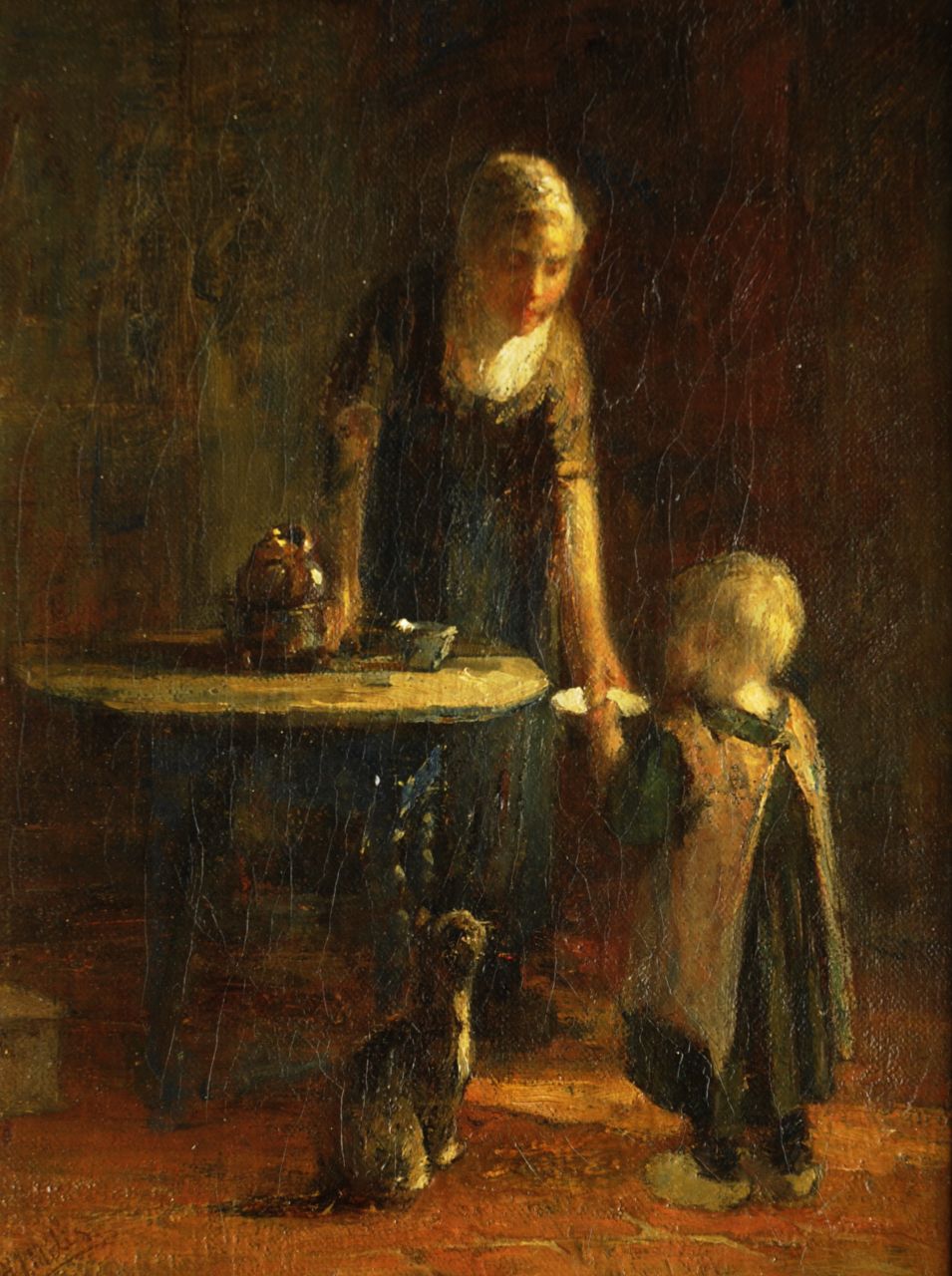 Henricus Joannes Mélis kunstwerk • schilderij • voorheen te koop Melk voor de poes