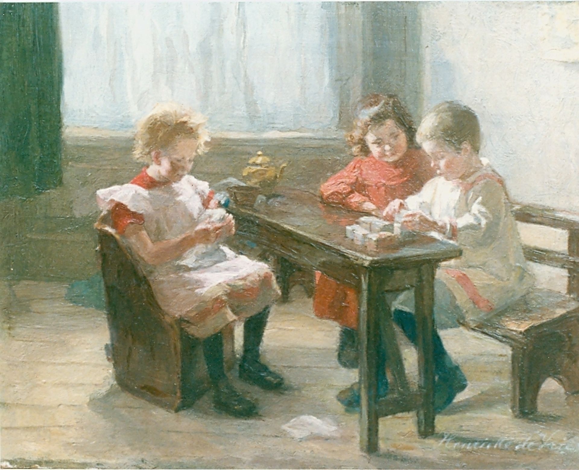 Henriëtte de Vries kunstwerk • schilderij • voorheen te koop Spelende kinderen aan een tafel