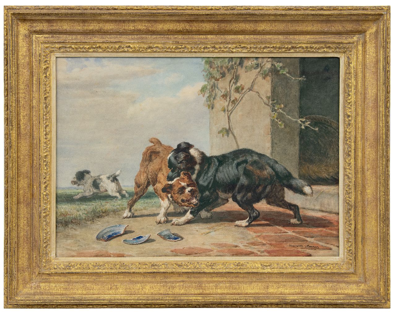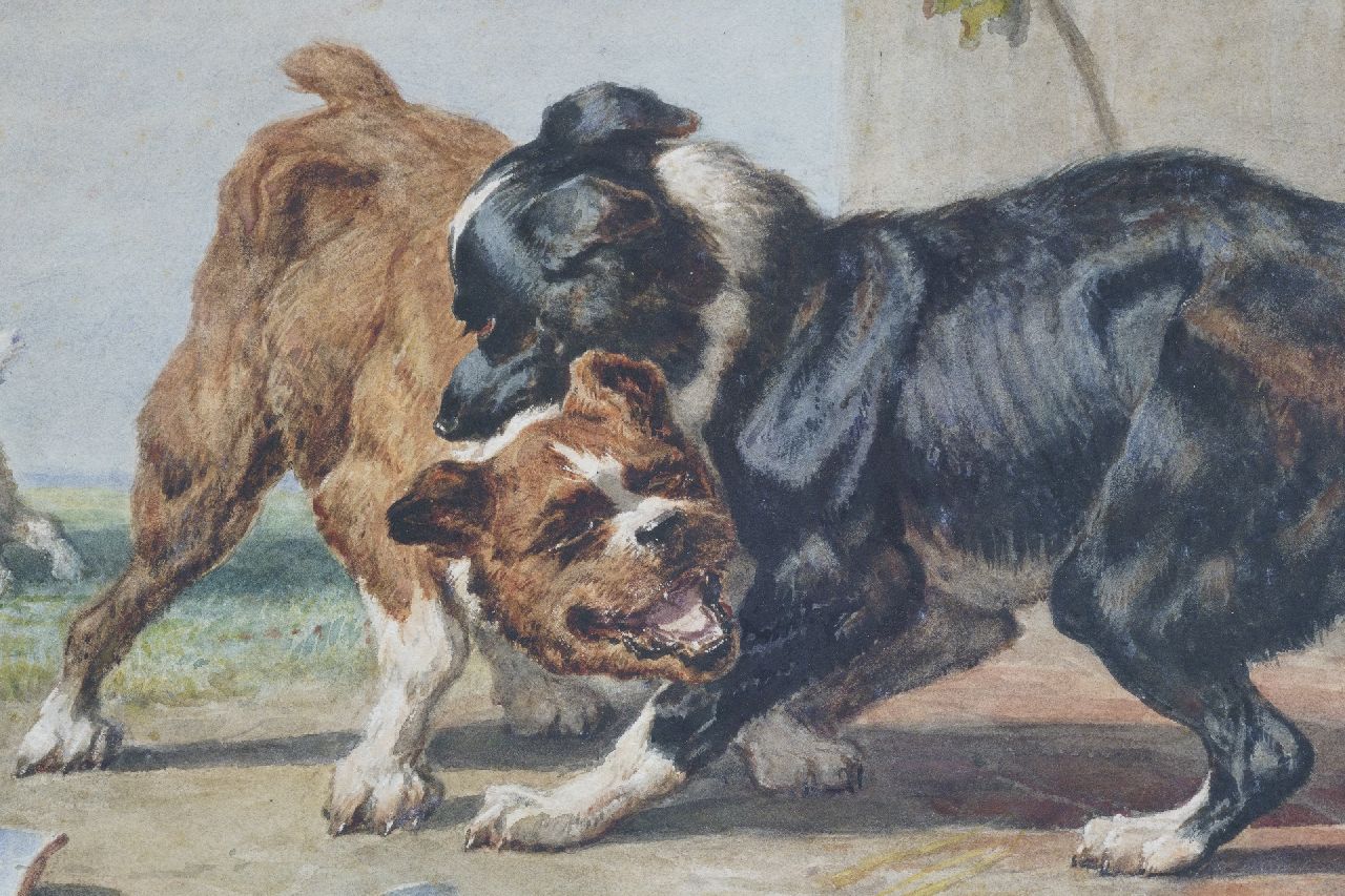 Henriette Ronner kunstwerk • aquarel • tekening • te koop Als twee honden vechten om een been...