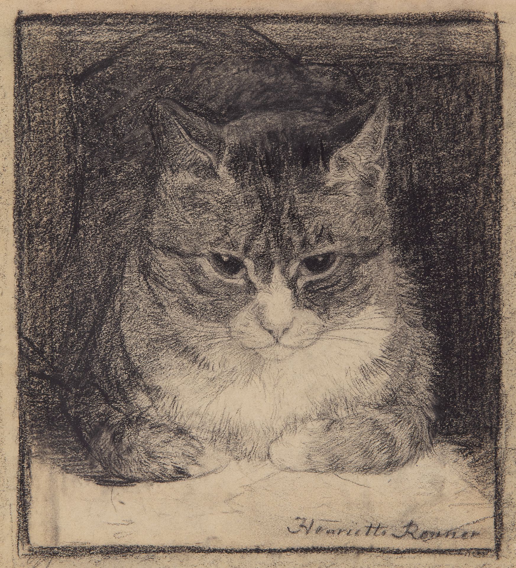Henriette Ronner-Knip schilderde aanvankelijk dierstukken en honden, maar na 1870 specialiseerde ze zich in het schilderen van poezen. Feilloos wist ze de textuur van vachten, ogen en kleuren weer te geven en trof ze de soms rustige, soms speelse en onderzoekende aard van poezen. Haar werk was vooral geliefd bij de opkomende bourgeoisie in de 19e eeuw. Zij verbeeldt haar dieren dan ook al spelend, slapend en kruipend op en over de kostbare meubels en luxueuze stoffen die bij deze rijk geworden burgers zo in trek waren. Zowel in Nederland als in België werd zij vanwege haar werk geridderd.