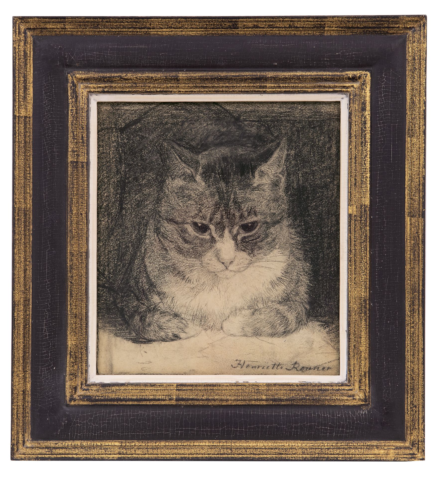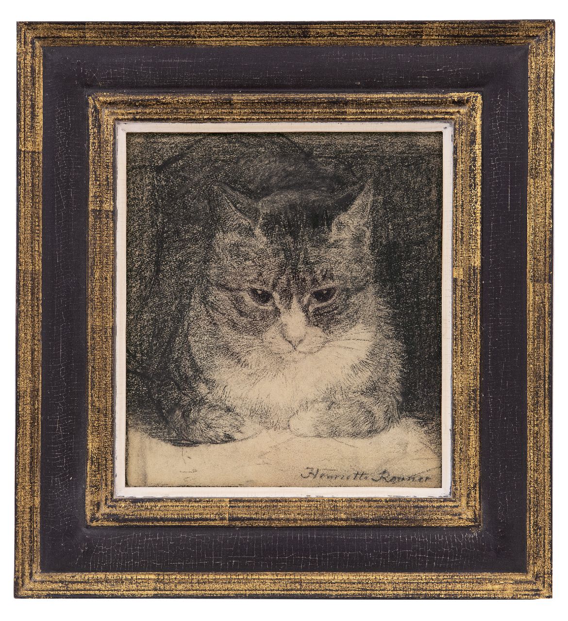 Henriette Ronner kunstwerk • aquarel • tekening • voorheen te koop Portret van een kat
