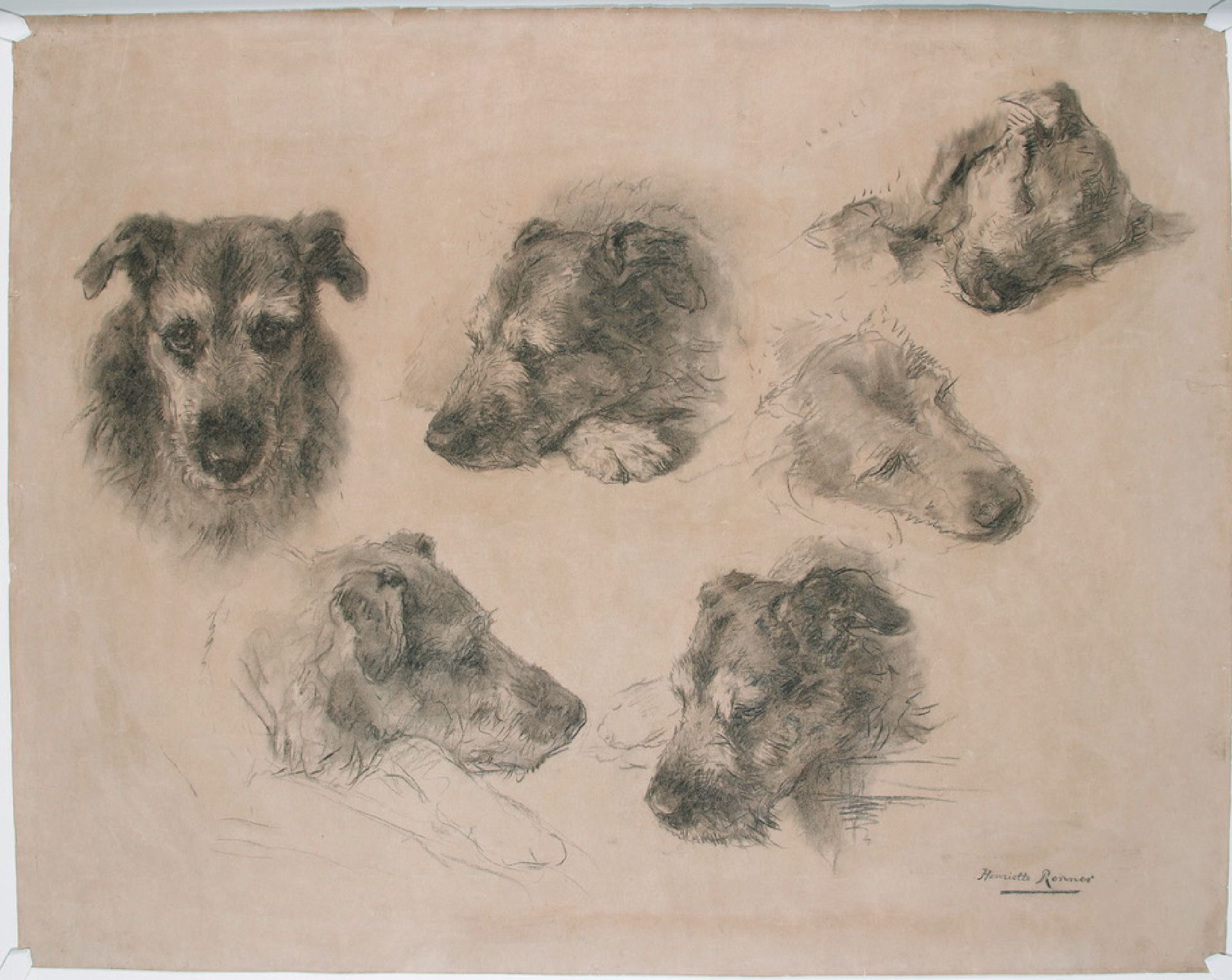 Henriette Ronner kunstwerk • aquarel • tekening • voorheen te koop Studies van een hond