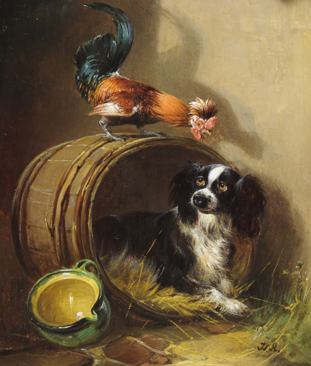 Henriette Ronner kunstwerk • schilderij • voorheen te koop Bij het ochtendkrieken pendant 16079