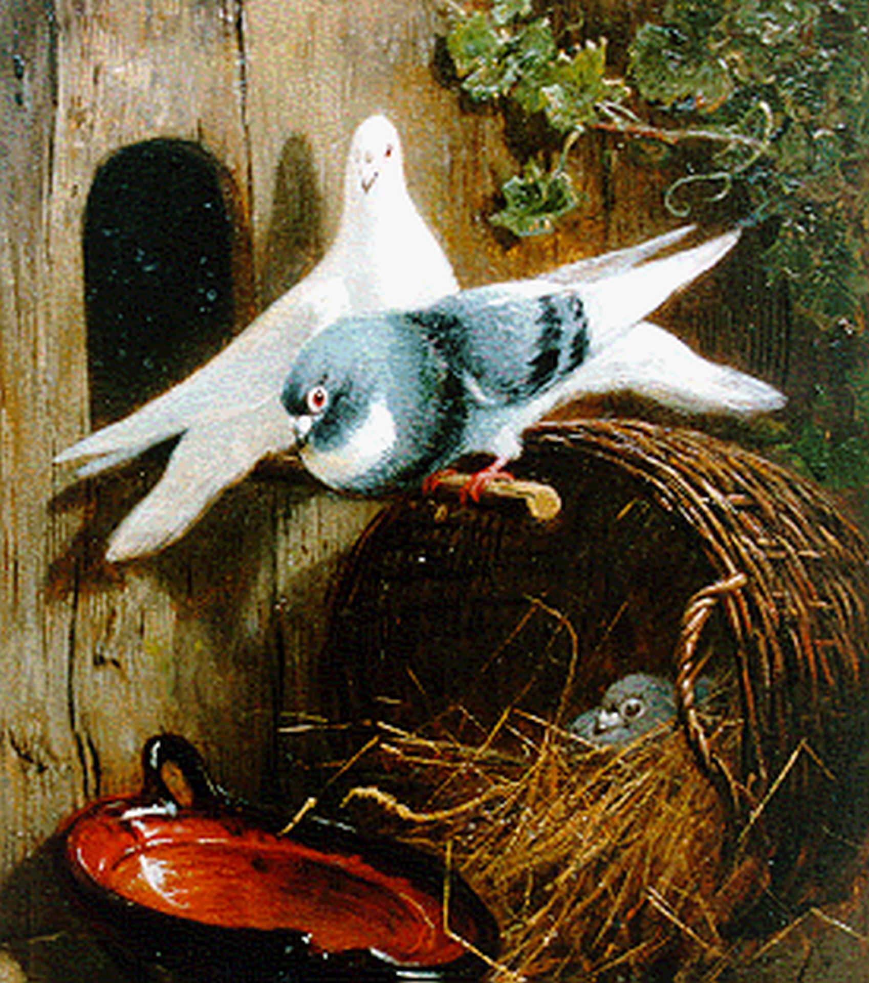 Henriette Ronner kunstwerk • schilderij • voorheen te koop Drie duiven bij een mand