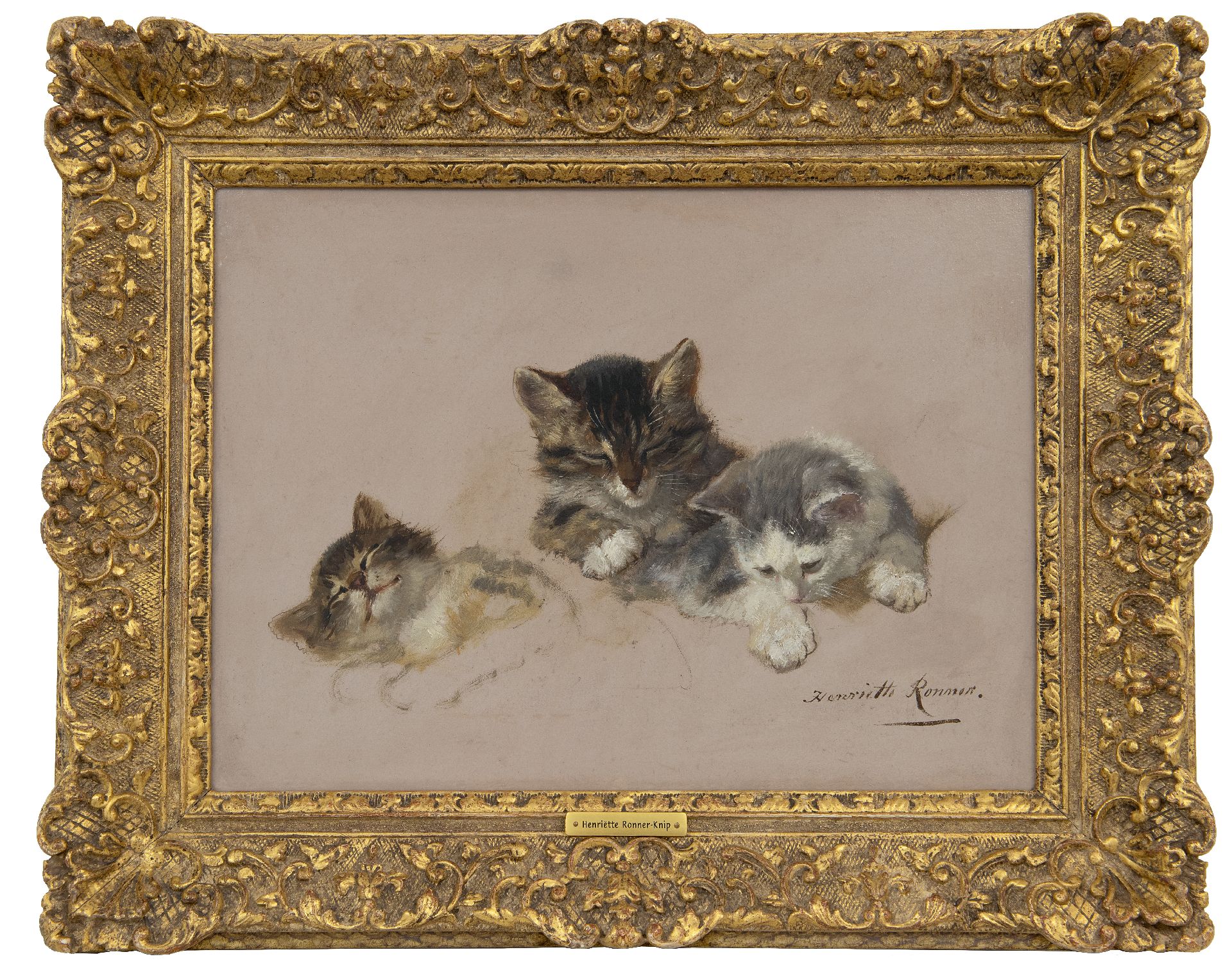 Henriette Ronner-Knip schilderde aanvankelijk dierstukken en honden, maar na 1870 specialiseerde ze zich in het schilderen van poezen. Feilloos wist ze de textuur van vachten, ogen en kleuren weer te geven en trof ze de soms rustige, soms speelse en onderzoekende aard van poezen. Haar werk was vooral geliefd bij de opkomende bourgeoisie in de 19e eeuw. Zij verbeeldt haar dieren dan ook al spelend, slapend en kruipend op en over de kostbare meubels en luxueuze stoffen die bij deze rijk geworden burgers zo in trek waren. Zowel in Nederland als in België werd zij vanwege haar werk geridderd.