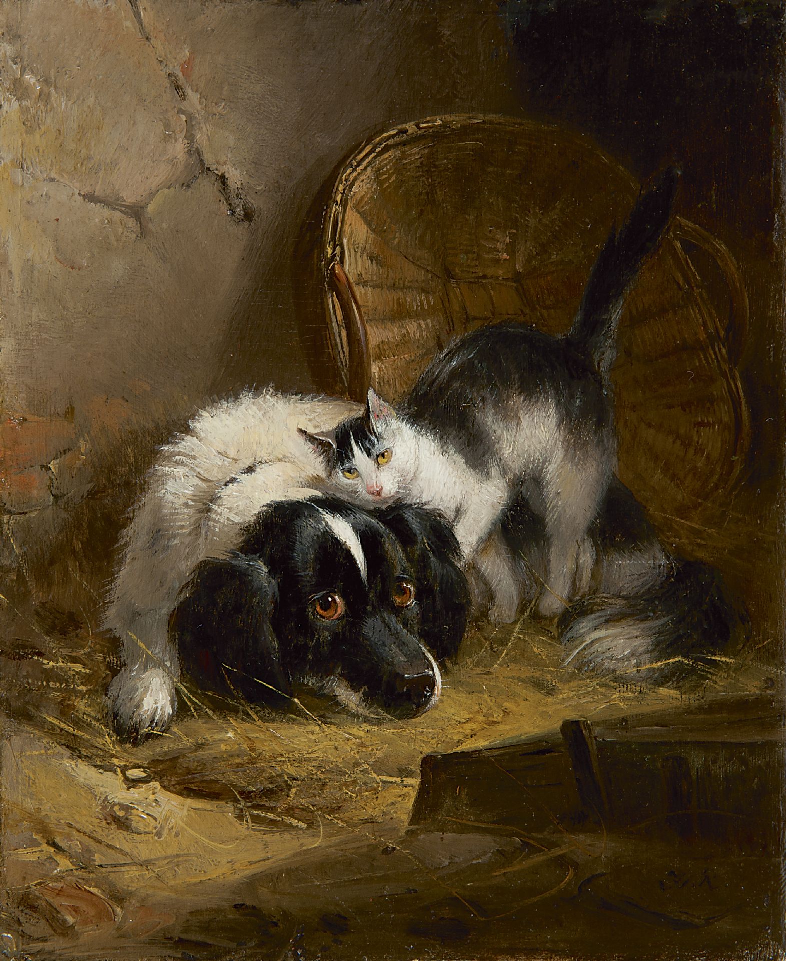 Henriette Ronner kunstwerk • schilderij • voorheen te koop Goede vrienden (pendant van inv. 14825)