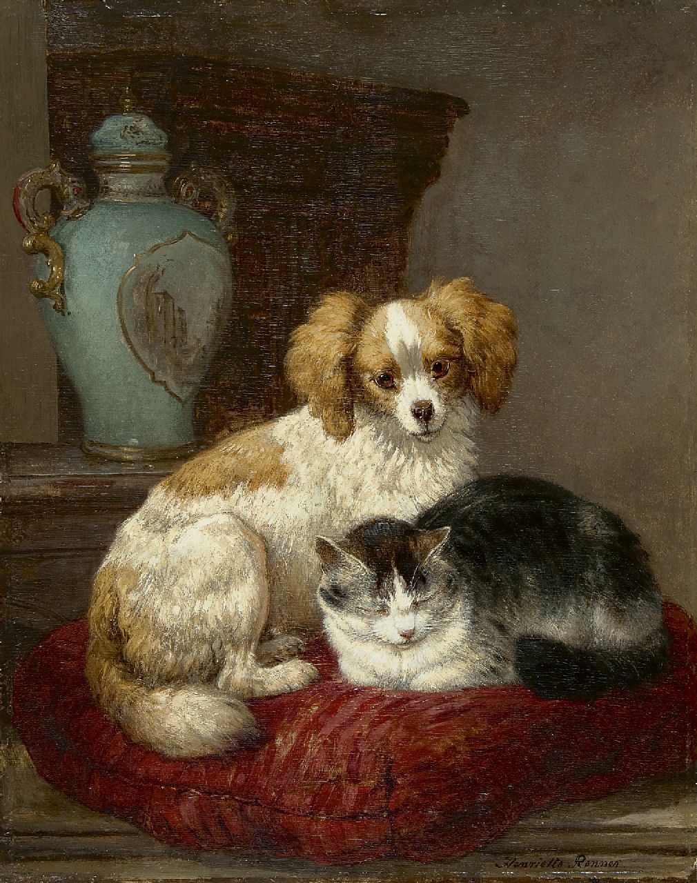 Henriette Ronner kunstwerk • schilderij • voorheen te koop Goede vrienden