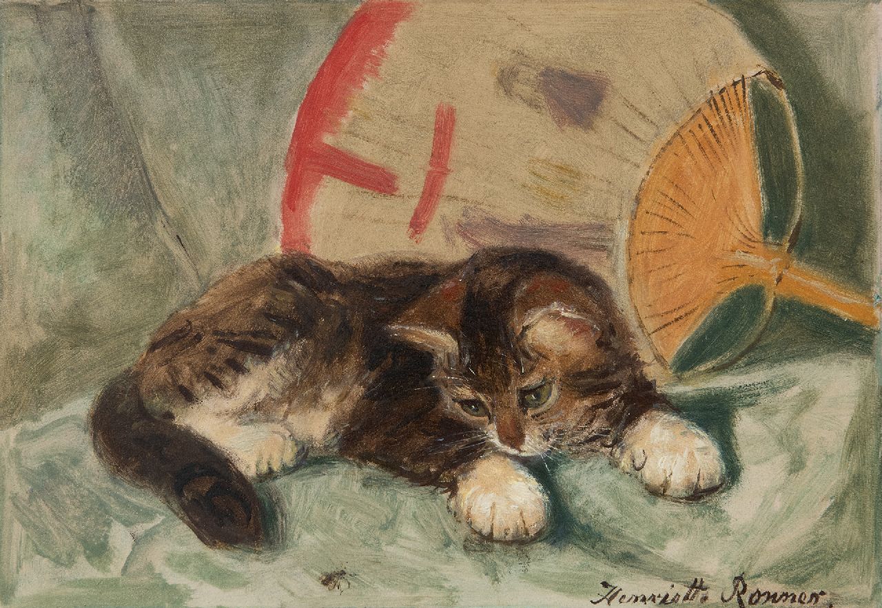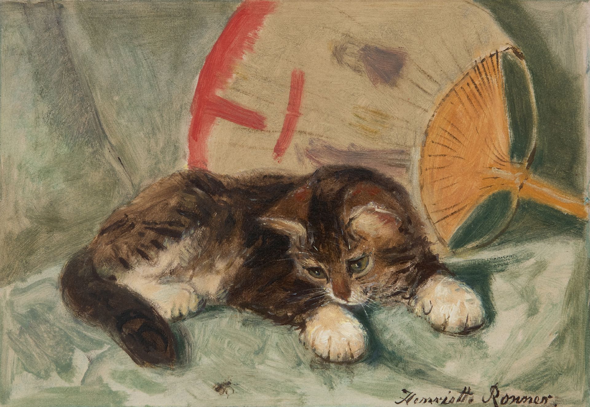 Henriette Ronner-Knip schilderde aanvankelijk dierstukken en honden, maar na 1870 specialiseerde ze zich in het schilderen van poezen. Feilloos wist ze de textuur van vachten, ogen en kleuren weer te geven en trof ze de soms rustige, soms speelse en onderzoekende aard van poezen. Haar werk was vooral geliefd bij de opkomende bourgeoisie in de 19e eeuw. Zij verbeeldt haar dieren dan ook al spelend, slapend en kruipend op en over de kostbare meubels en luxueuze stoffen die bij deze rijk geworden burgers zo in trek waren. Zowel in Nederland als in België werd zij vanwege haar werk geridderd.