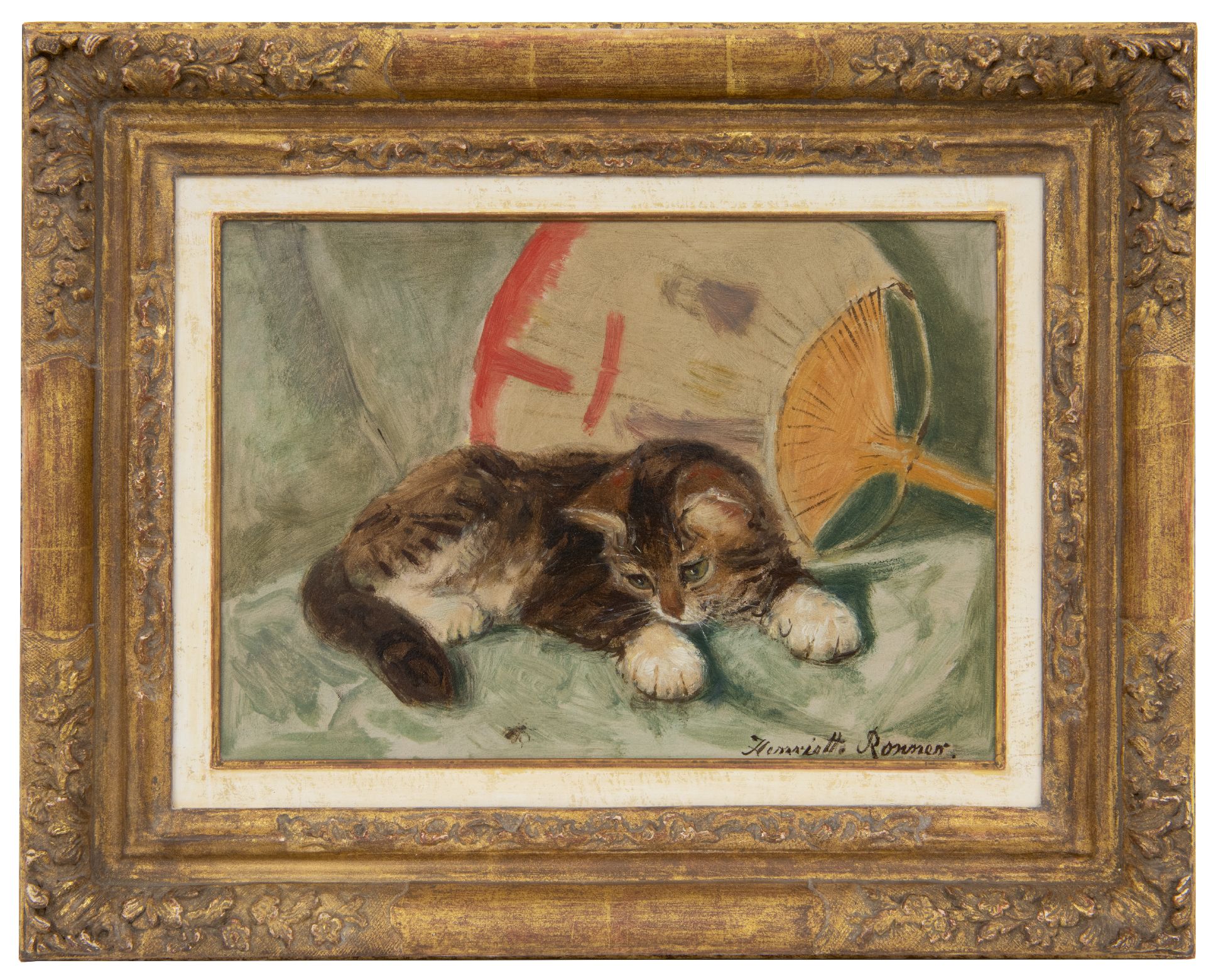 Henriette Ronner kunstwerk • schilderij • voorheen te koop Jong katje met een vlieg