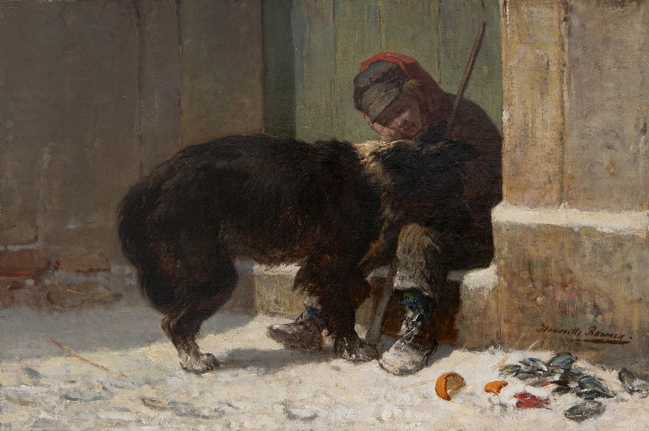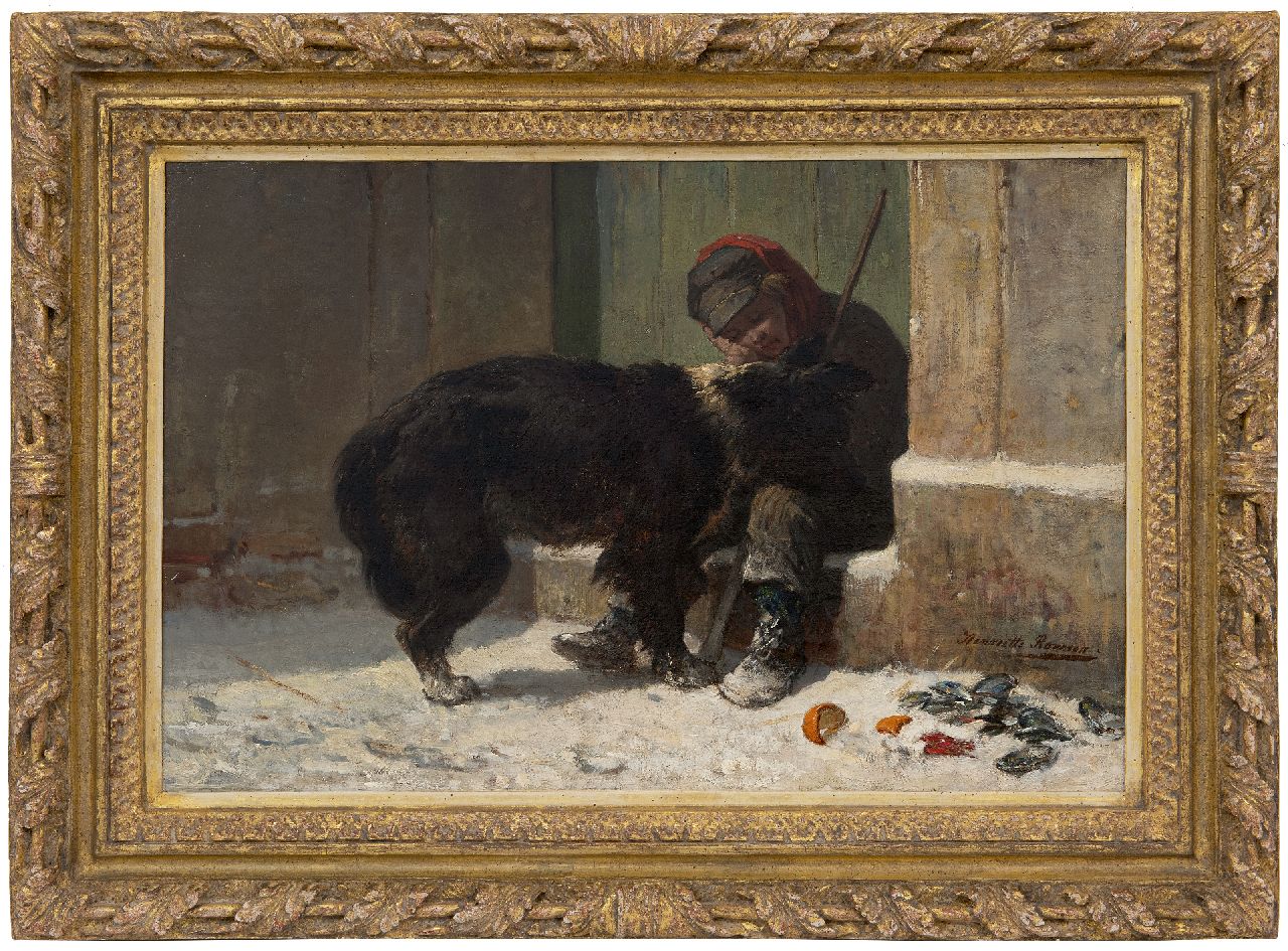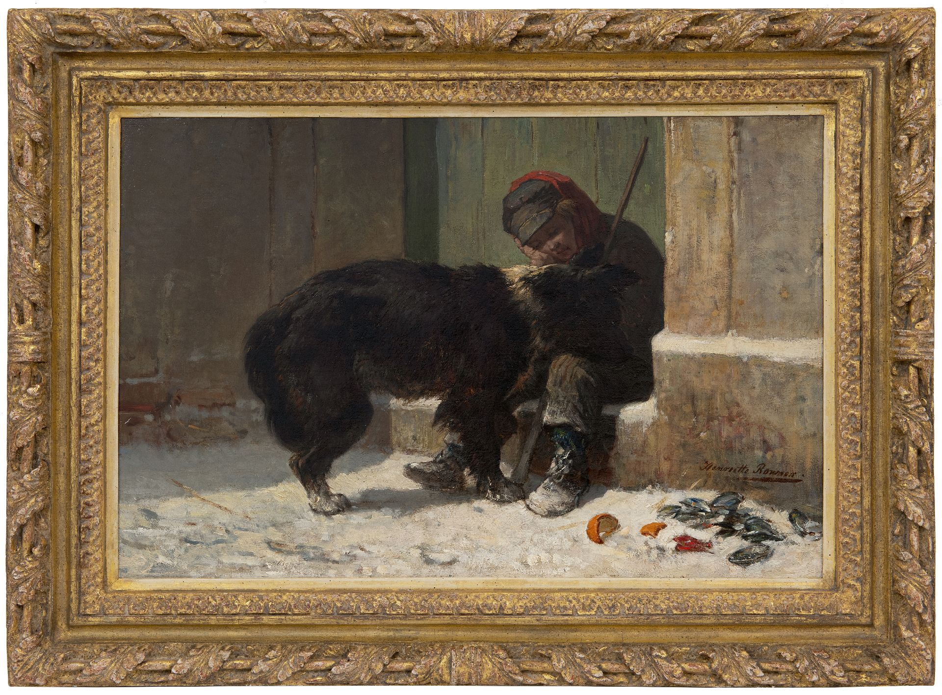 Henriette Ronner kunstwerk • schilderij • te koop Jongen met zijn hond in de sneeuw