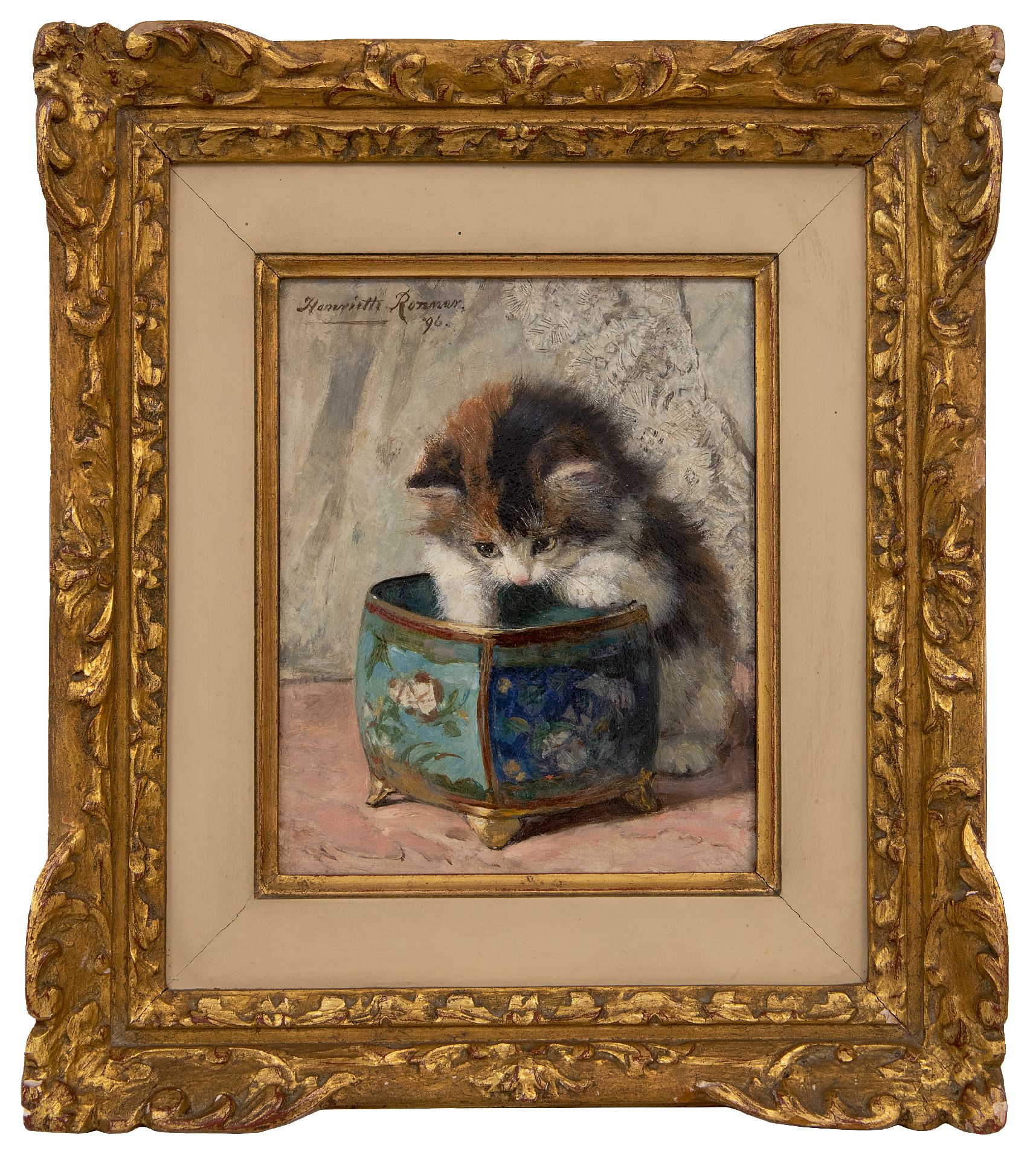 Henriette Ronner kunstwerk • schilderij • te koop Kitten spelend met een sierpot