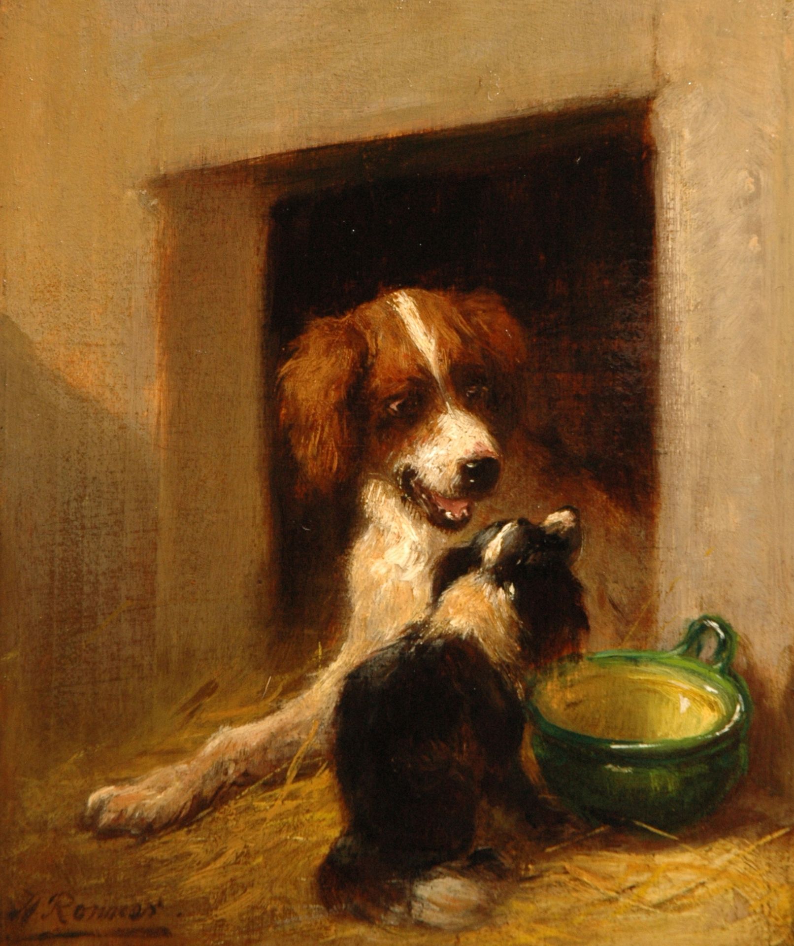 Henriette Ronner kunstwerk • schilderij • voorheen te koop Onverwacht bezoek