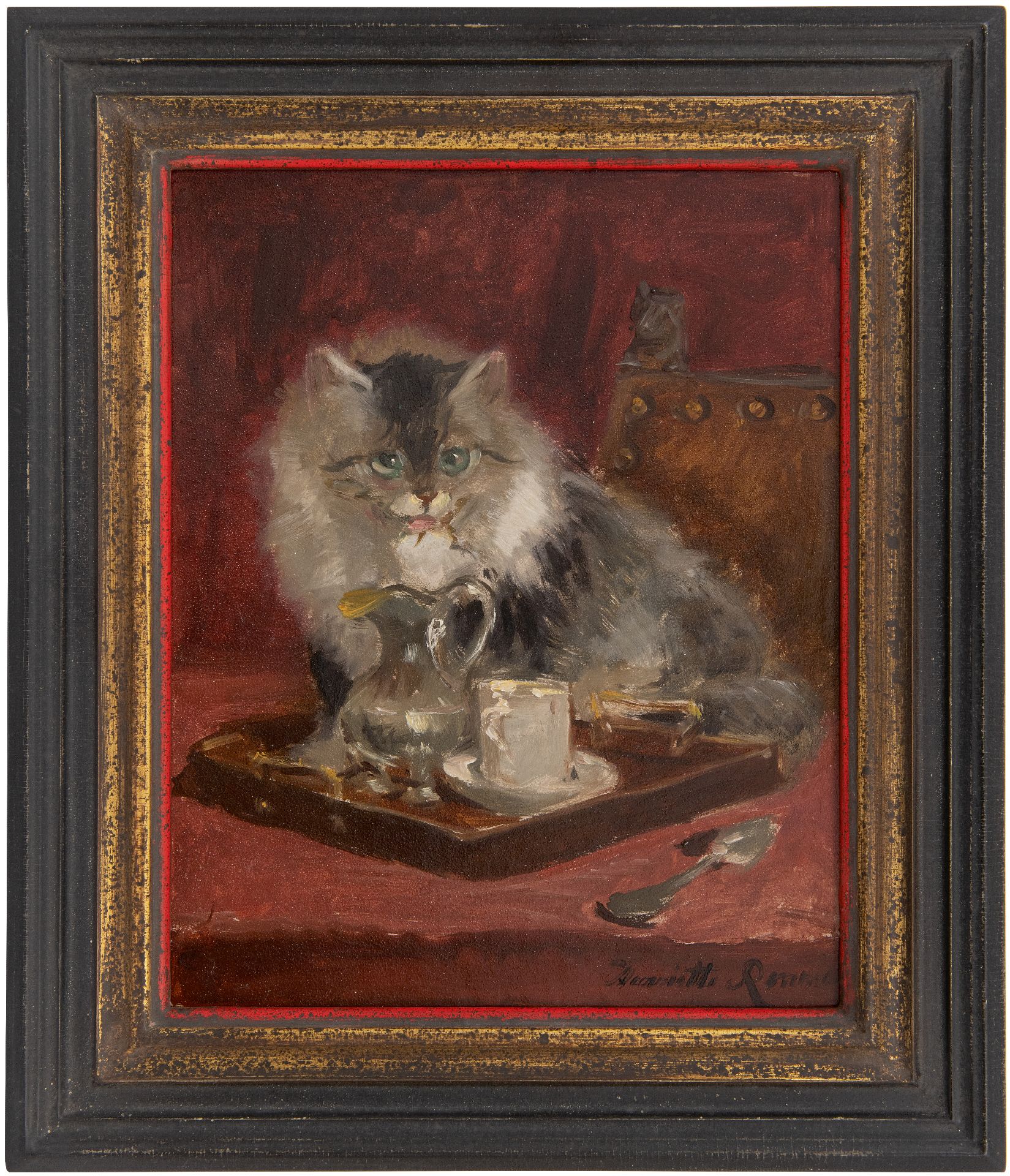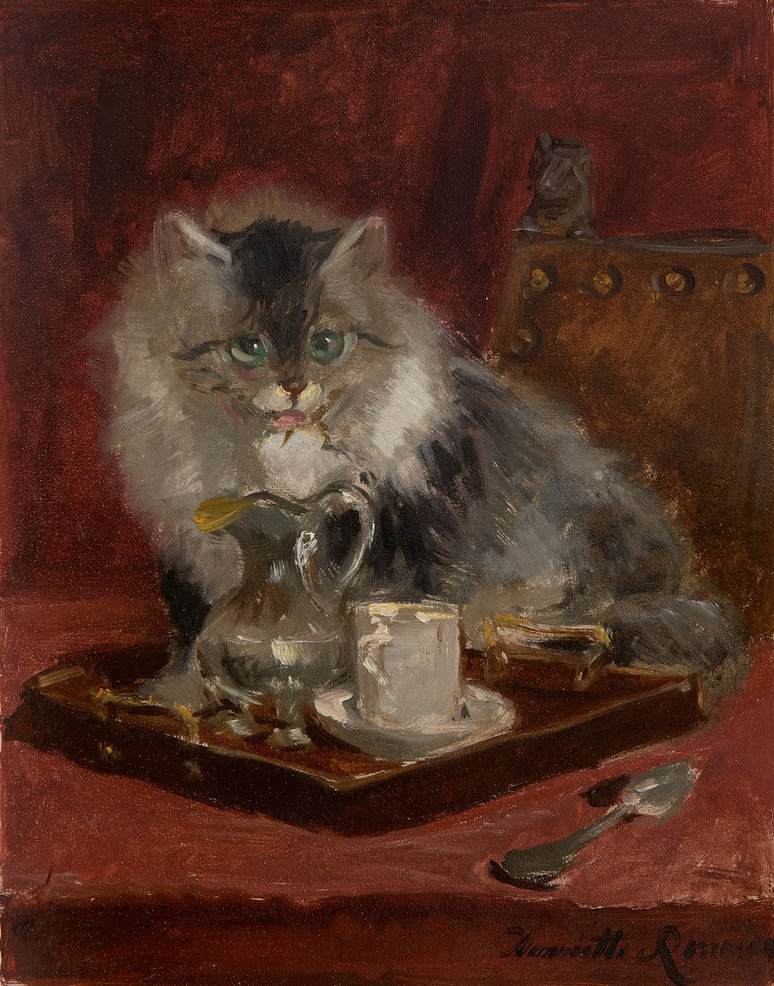 Henriette Ronner kunstwerk • schilderij • voorheen te koop Poes bij dienblad met kan en kopje