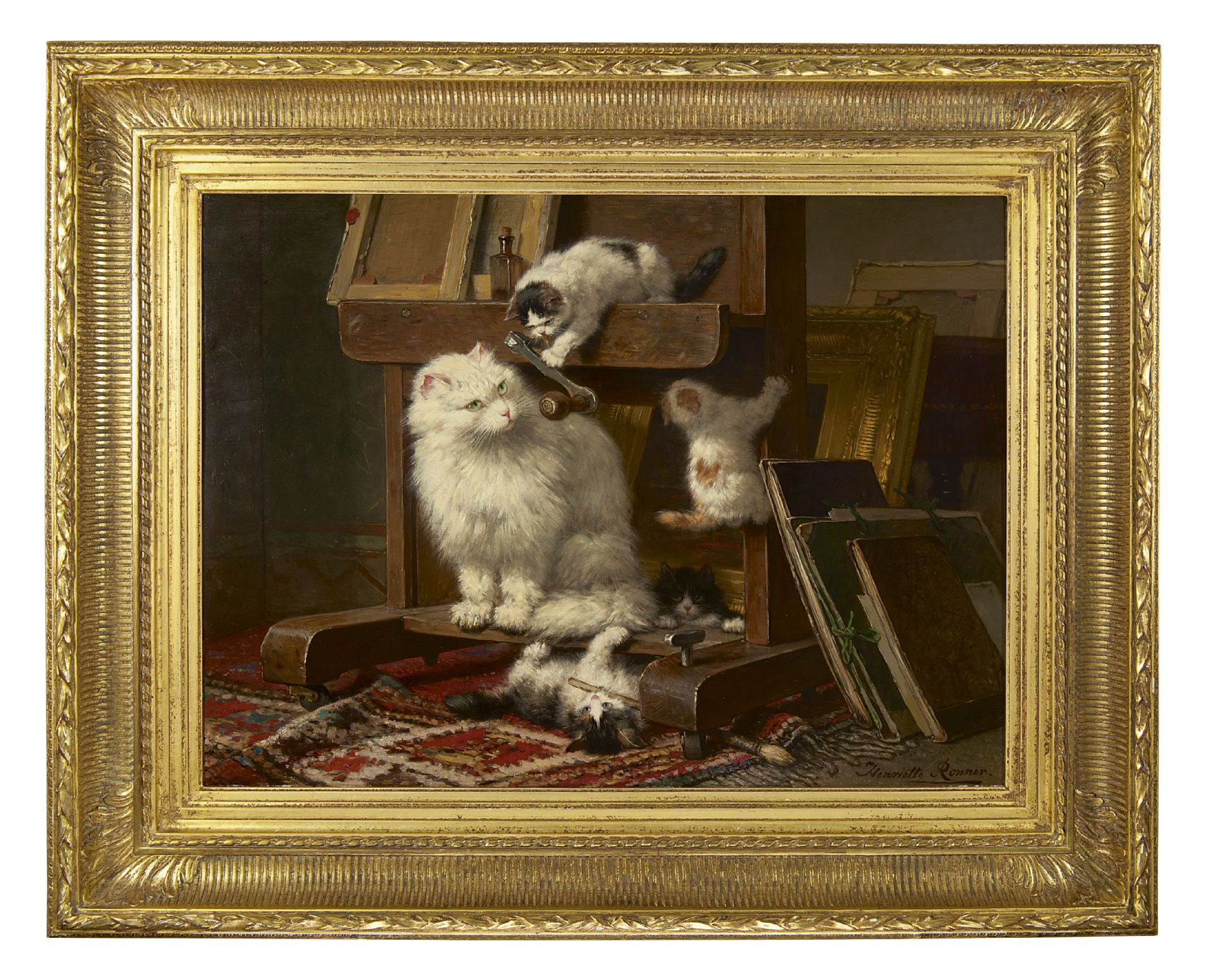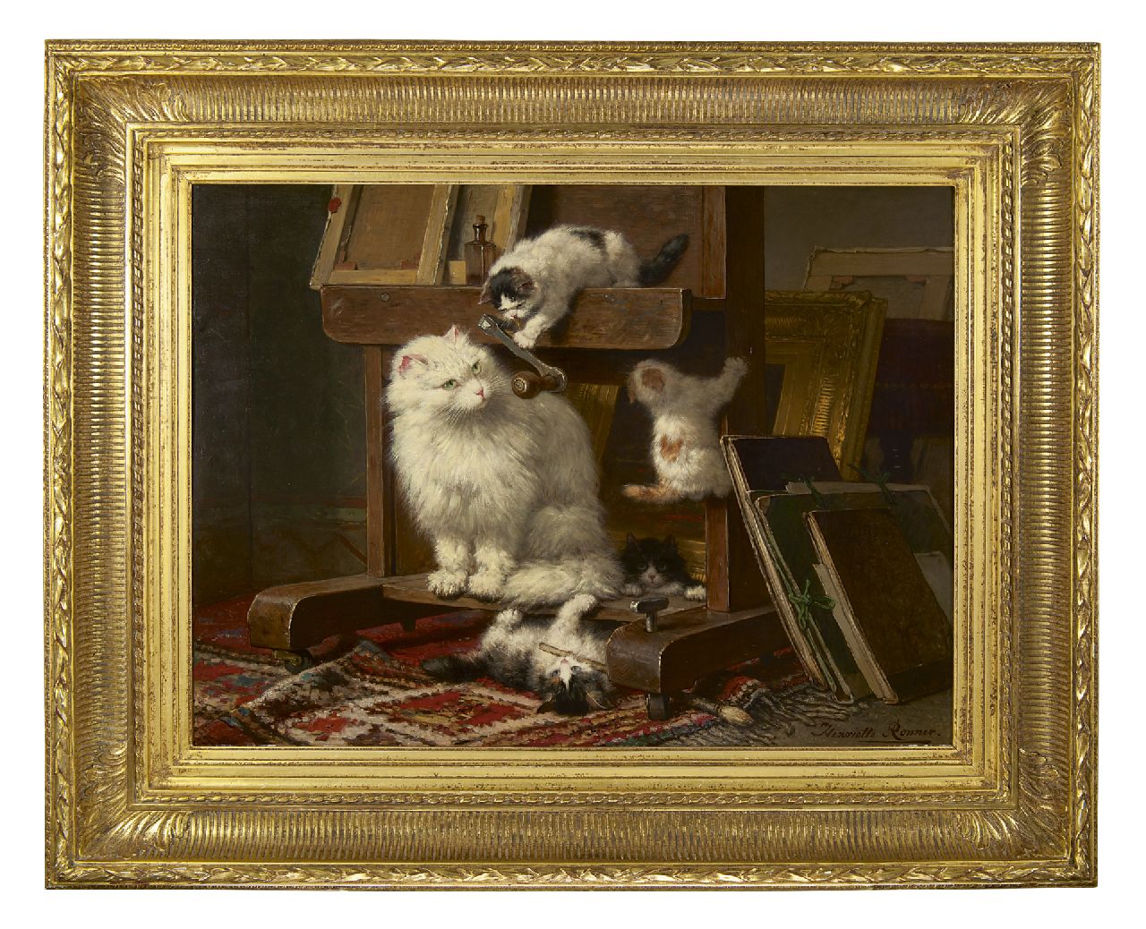 Henriëtte Ronner-Knip schilderde aanvankelijk dierstukken en honden, na 1870 vooral poezen. Feilloos wist ze textuur van de vachten, ogen en kleuren weer te geven en trof ze de soms rustige, soms speelse en onderzoekende aard van poezen. Haar werk was vooral geliefd bij de opkomende bourgeoisie in de 19e eeuw. Zij beeldt haar dieren dan ook al spelend, slapend en kruipend op en over de kostbare meubels en luxueuze stoffen die bij deze rijkgeworden burgers zo in trek waren. Zowel in Nederland als in België werd zij om haar werk geridderd.