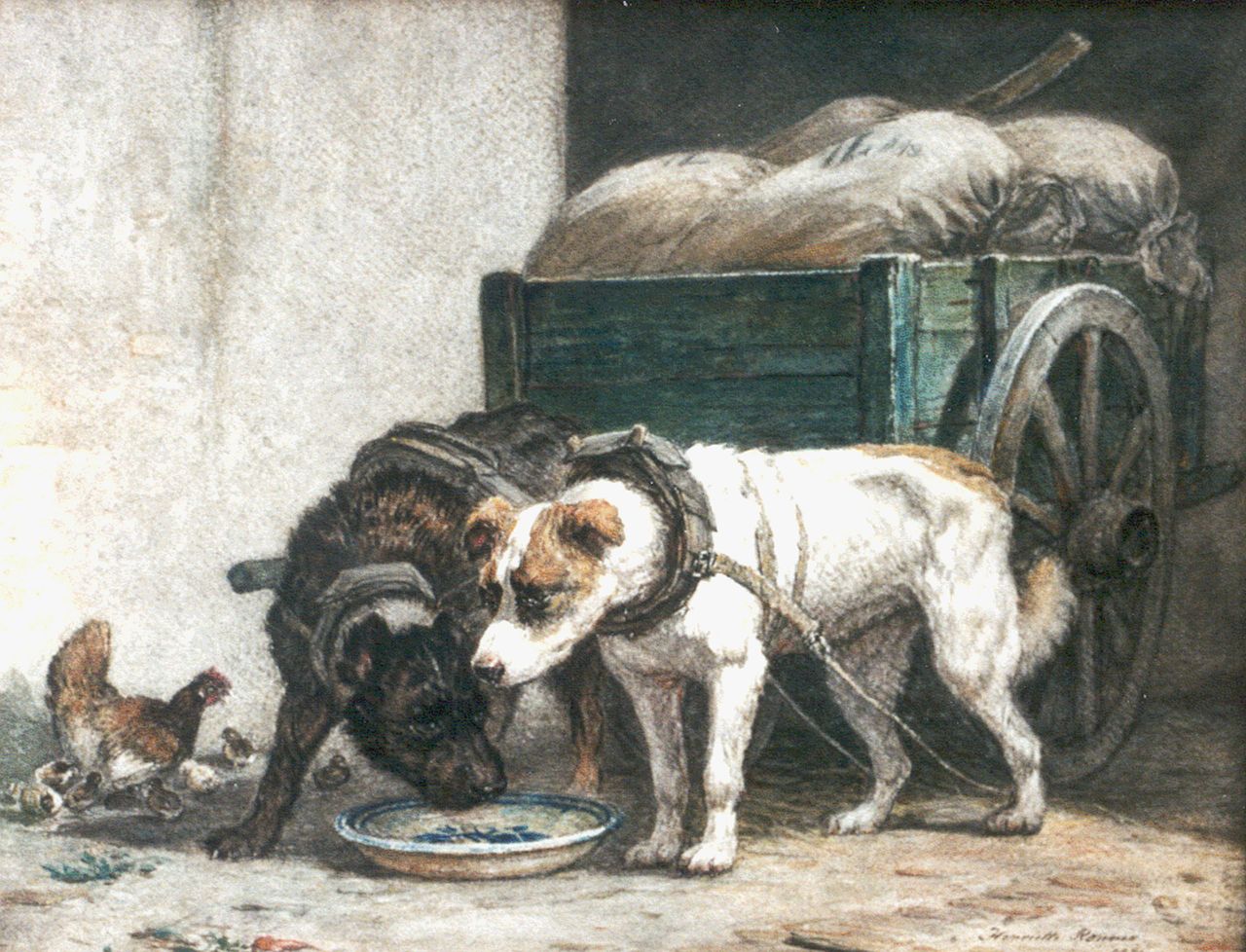 Henriette Ronner kunstwerk • aquarel • tekening • voorheen te koop Rustende trekhonden