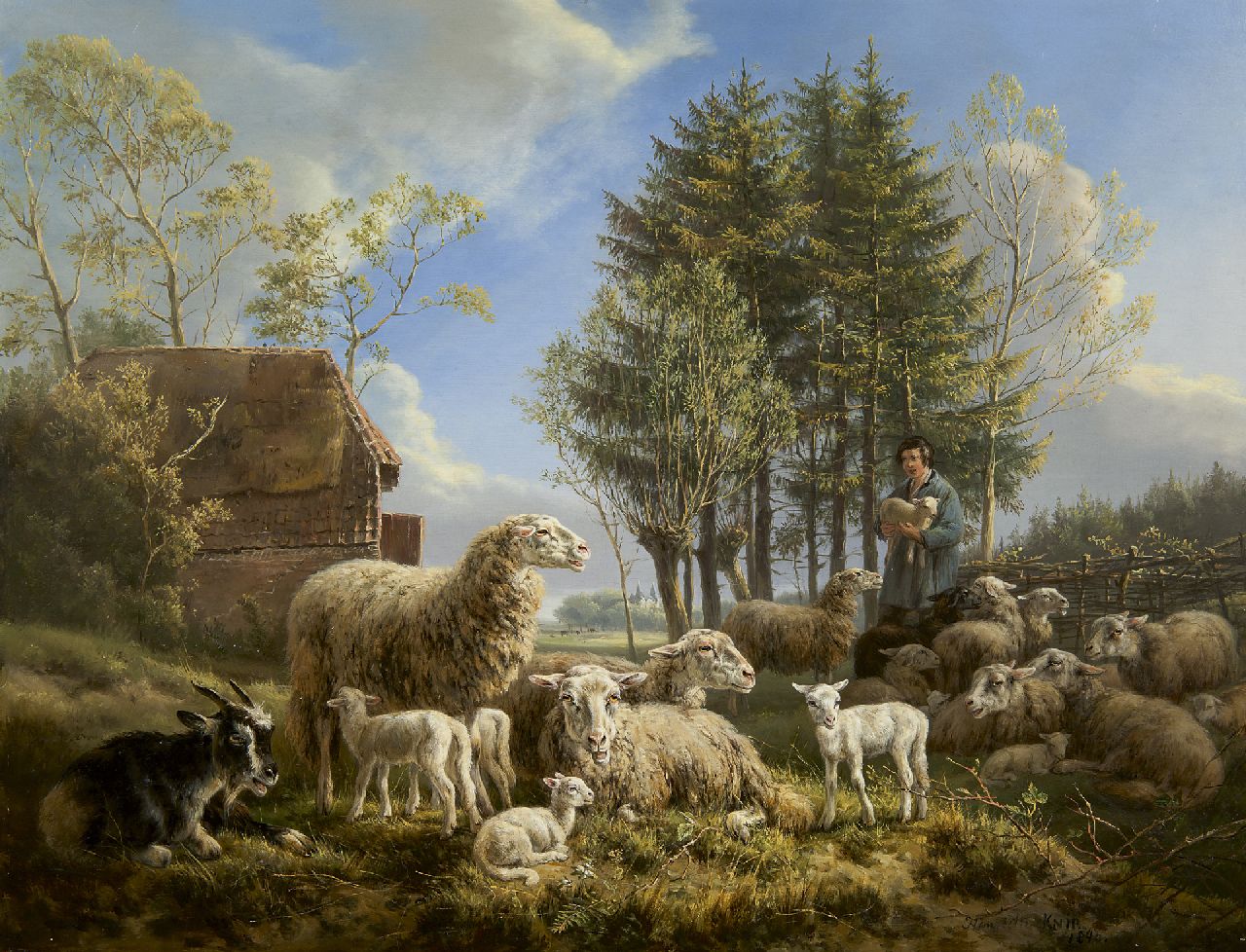 Henriette Ronner kunstwerk • schilderij • voorheen te koop Schaapherder met kudde