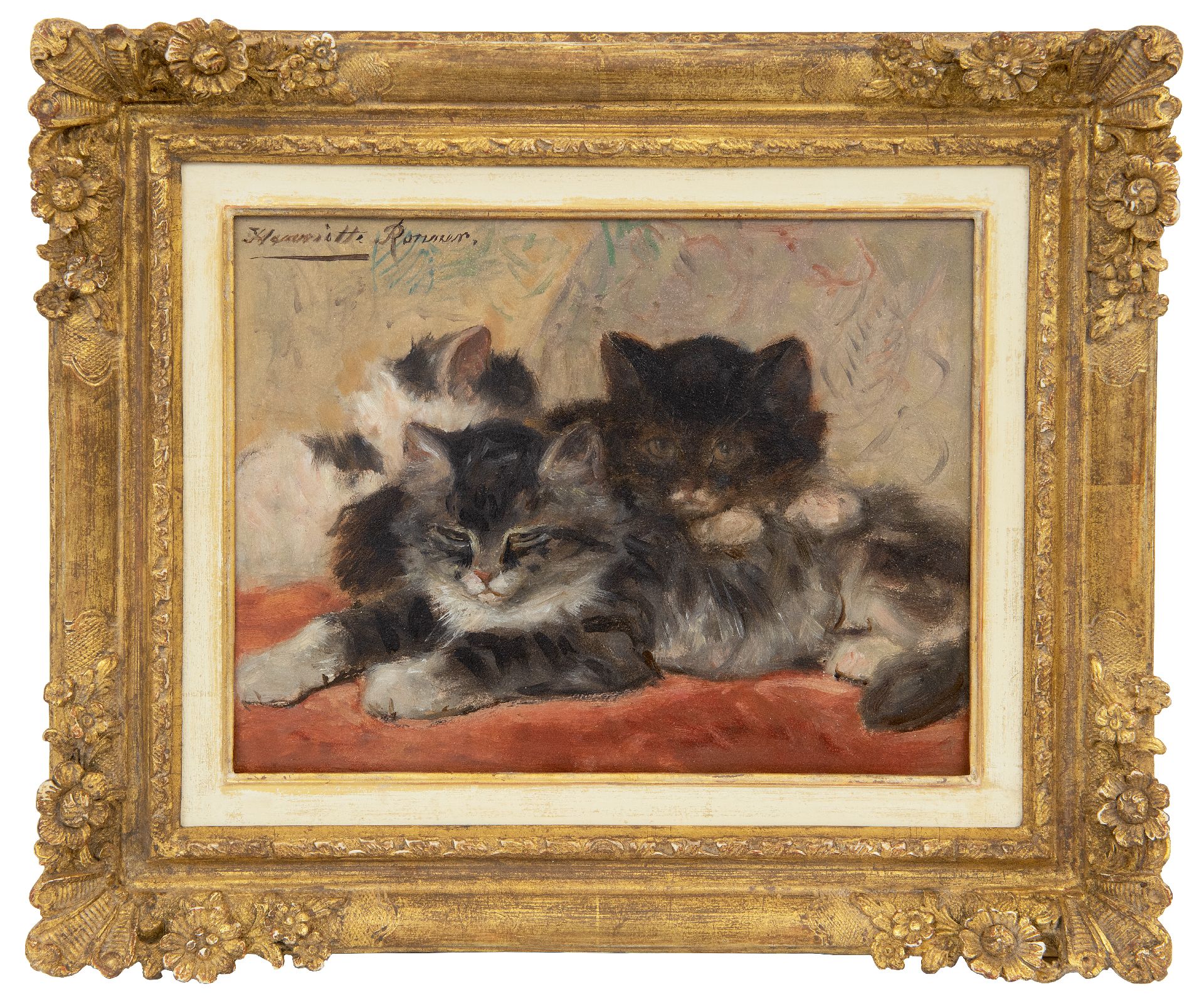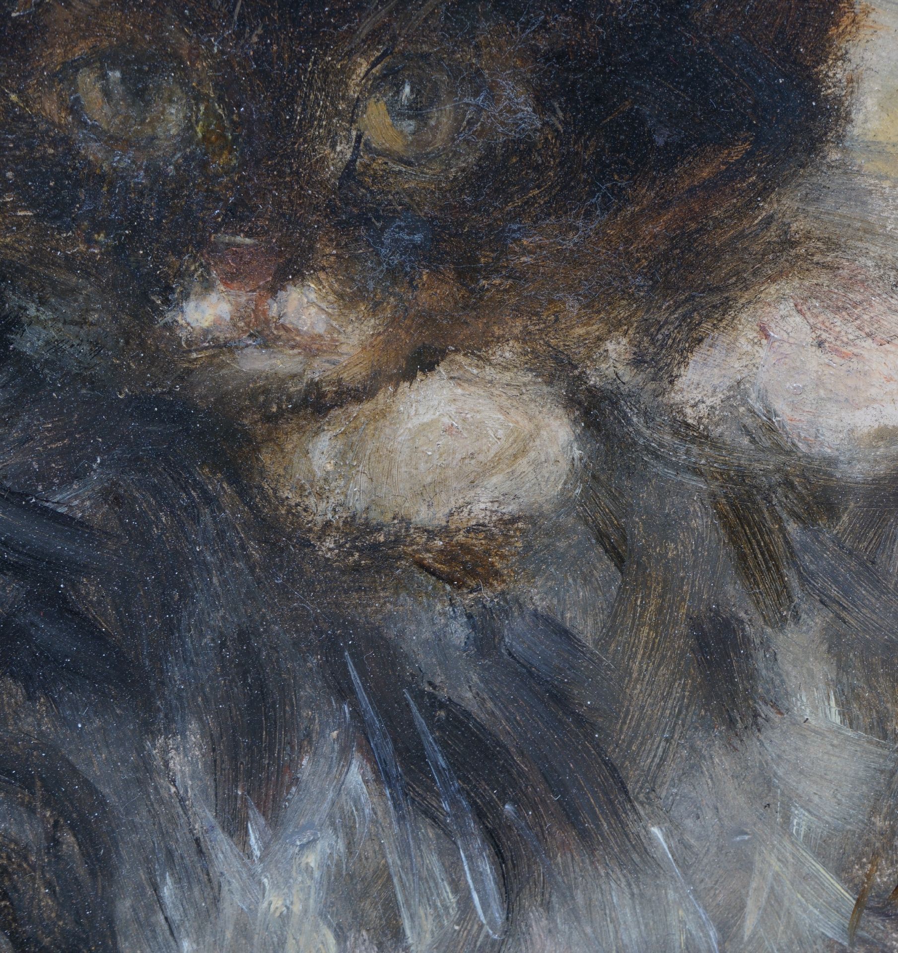 Henriette Ronner-Knip schilderde aanvankelijk dierstukken en honden, maar na 1870 specialiseerde ze zich in het schilderen van poezen. Feilloos wist ze de textuur van vachten, ogen en kleuren weer te geven en trof ze de soms rustige, soms speelse en onderzoekende aard van poezen. Haar werk was vooral geliefd bij de opkomende bourgeoisie in de 19e eeuw. Zij verbeeldt haar dieren dan ook al spelend, slapend en kruipend op en over de kostbare meubels en luxueuze stoffen die bij deze rijk geworden burgers zo in trek waren. Zowel in Nederland als in België werd zij vanwege haar werk geridderd.