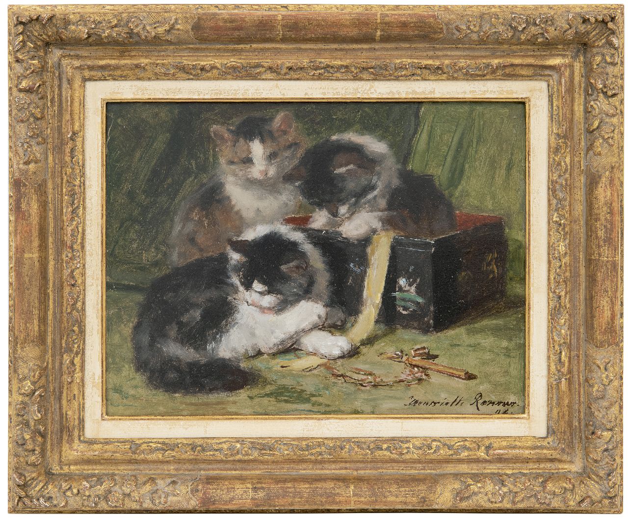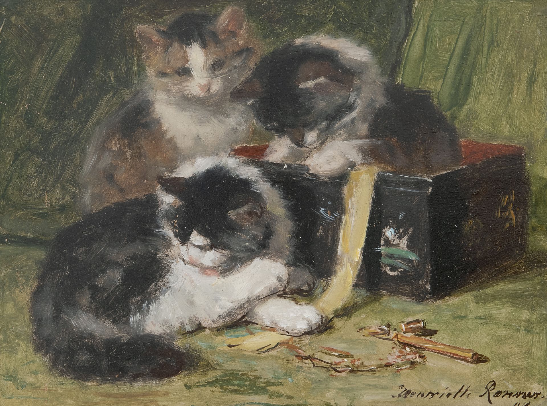 Henriette Ronner kunstwerk • schilderij • voorheen te koop Spelende kittens bij een naaidoos