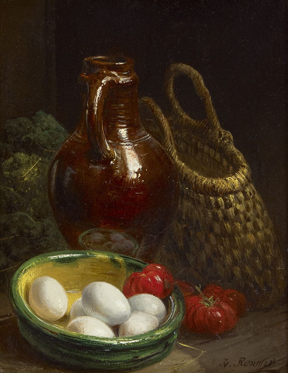 Henriette Ronner kunstwerk • schilderij • voorheen te koop Stilleven met eieren, tomaten en aardewerk