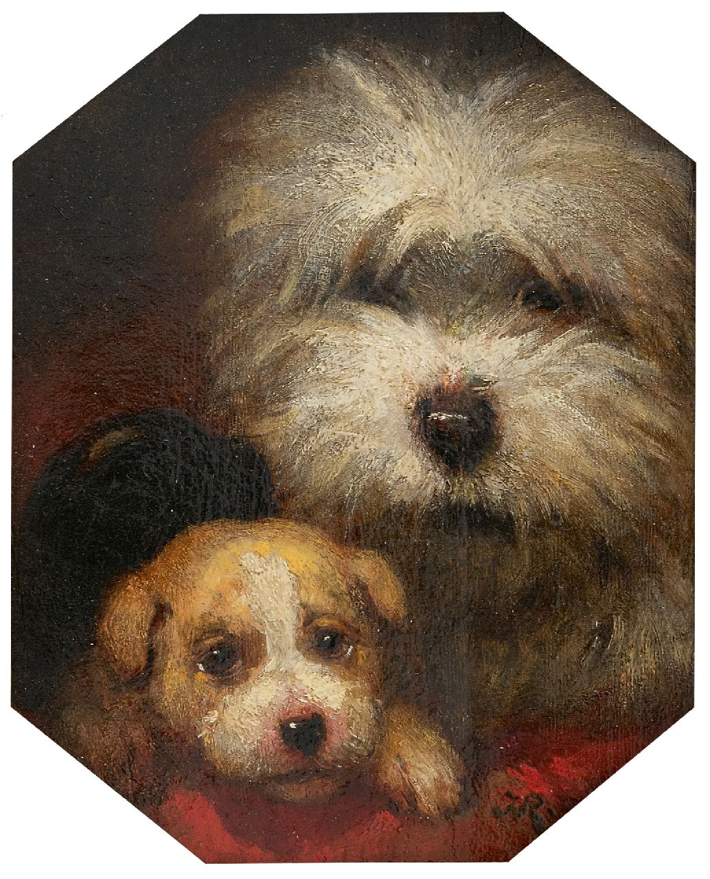Henriette Ronner kunstwerk • schilderij • voorheen te koop Twee hondenkopjes