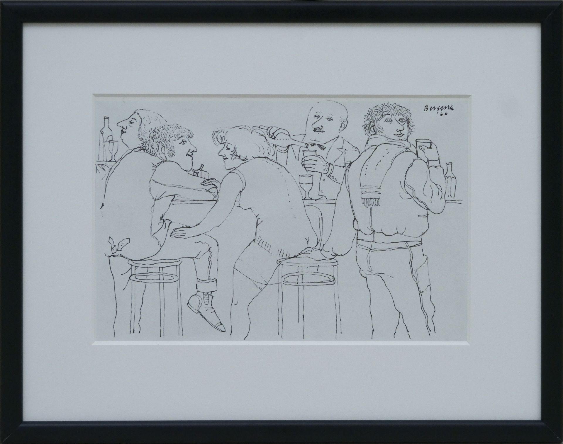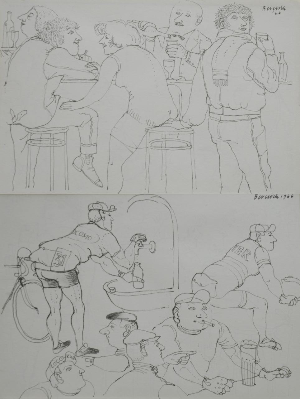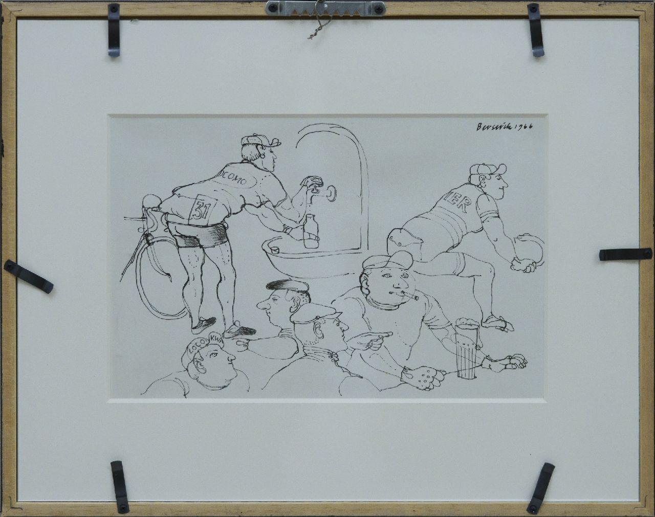Herman Berserik kunstwerk • aquarel • tekening • te koop Aan de bar; verso: Wielrenners aan de bar