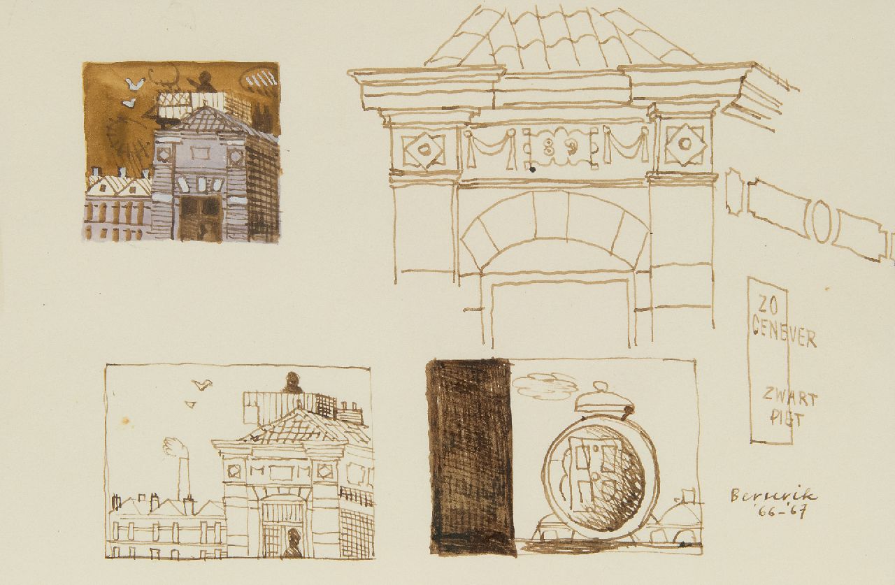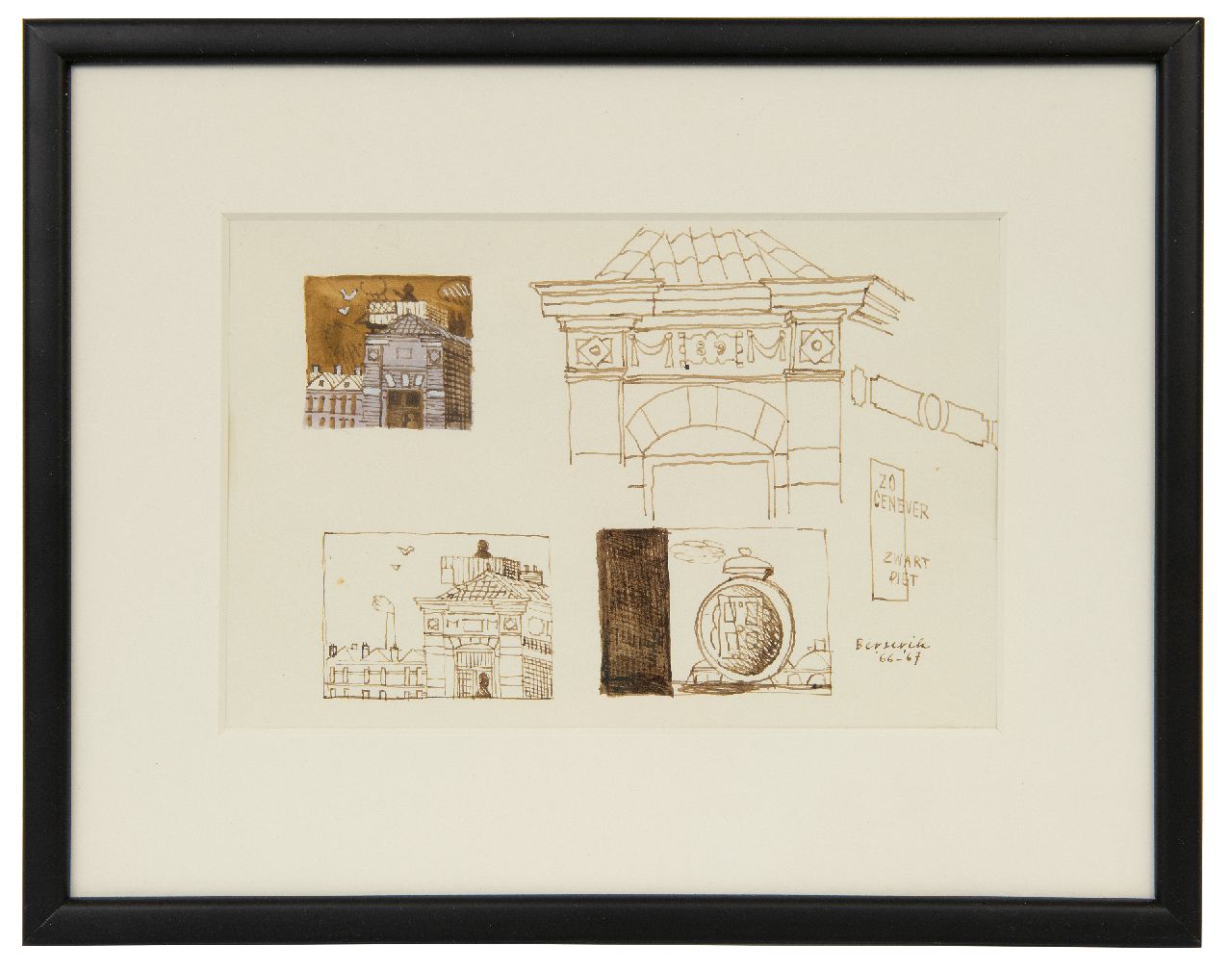 pen en sepia en aquarel op papier 15,8 x 23,7 cm, gesigneerd rechtsonder en gedateerd '66-'67