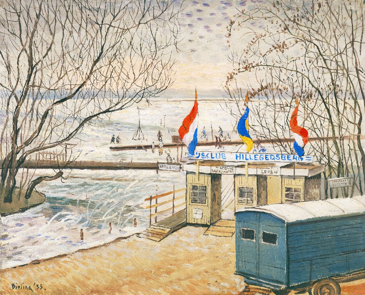 Herman Bieling kunstwerk • schilderij • voorheen te koop De IJsclub Hillegersberg aan de Bergse Achterplas