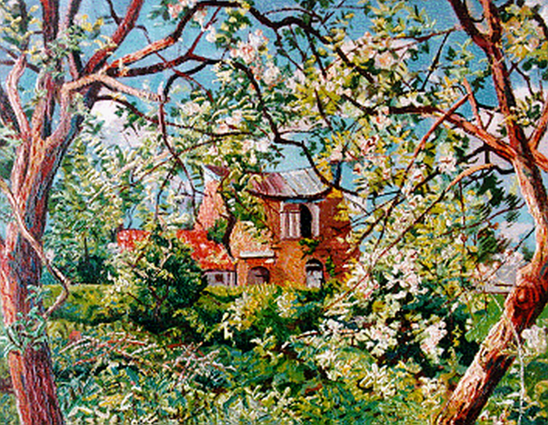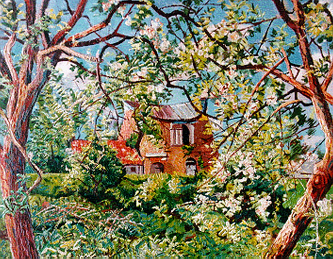 Herman Bieling kunstwerk • schilderij • voorheen te koop Huis in een boomgaard