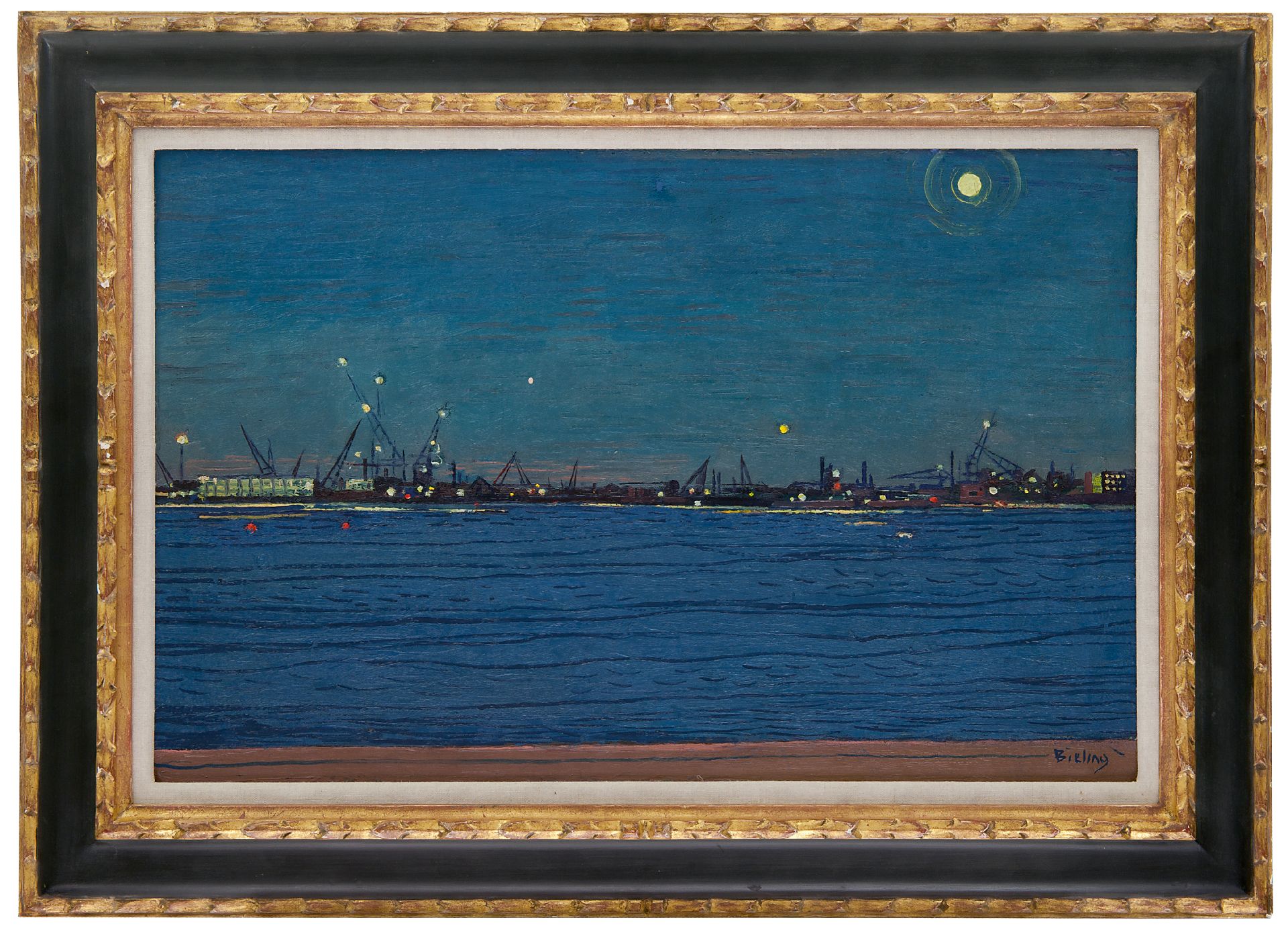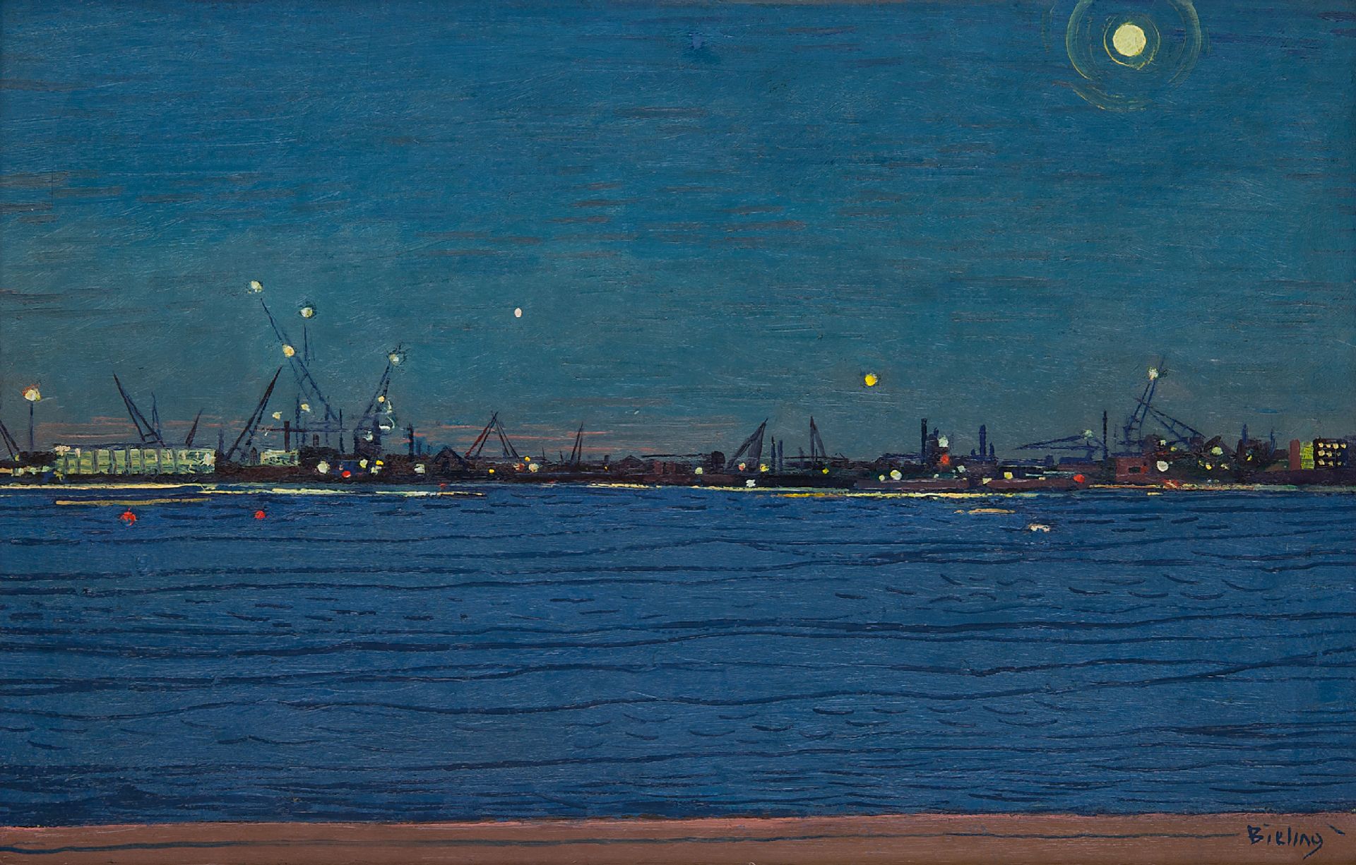 Herman Bieling kunstwerk • schilderij • voorheen te koop Maas bij nacht