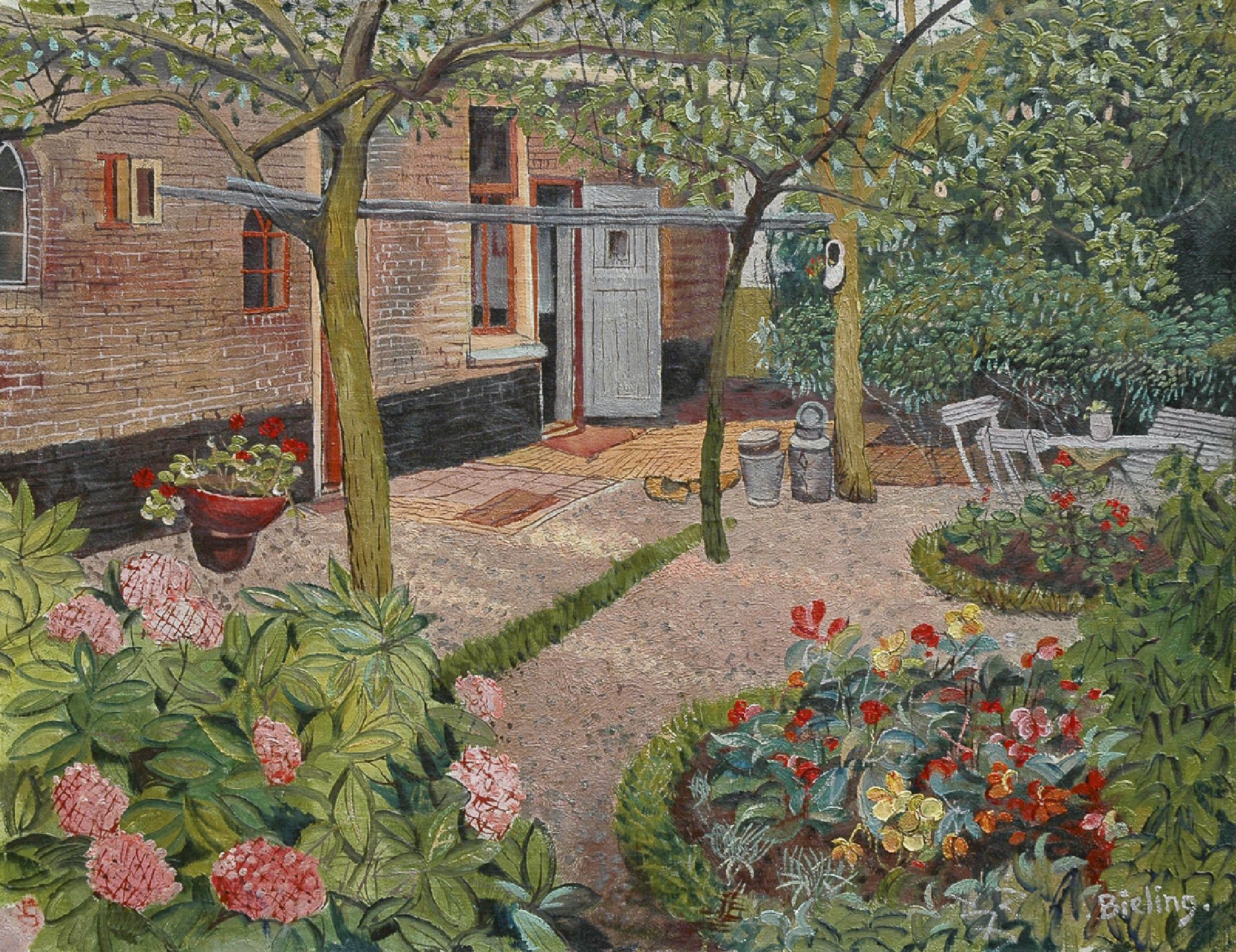 Herman Bieling kunstwerk • schilderij • voorheen te koop Zonnige achtertuin