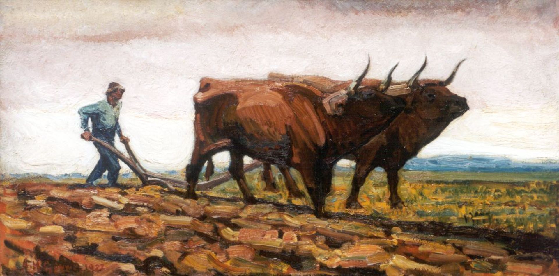 Herman Gouwe kunstwerk • schilderij • voorheen te koop Ploegende ossen