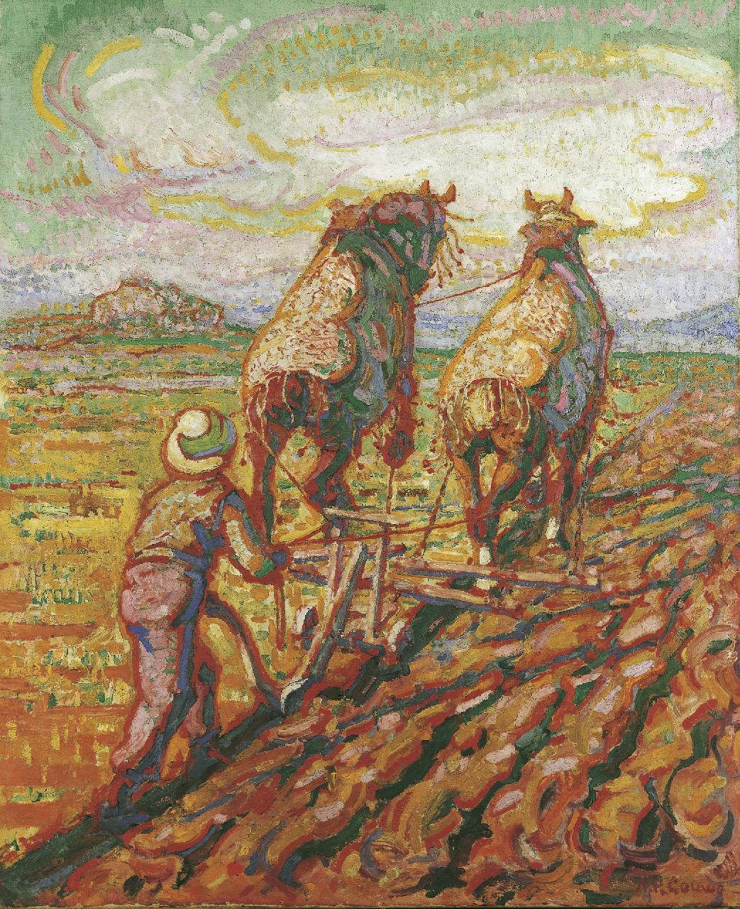 Gouwe A.H.  | Adriaan Herman Gouwe, Ploegende paarden, olieverf op doek 74,5 x 61,5 cm, gesigneerd rechtsonder en te dateren ca. 1923