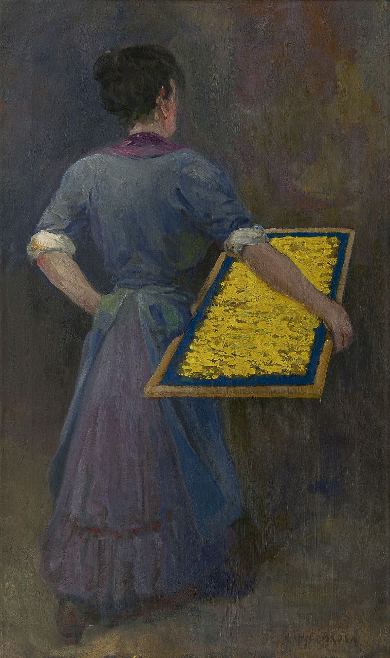 Herman Heijenbrock kunstwerk • schilderij • voorheen te koop Arbeidster in de vermicellifabriek