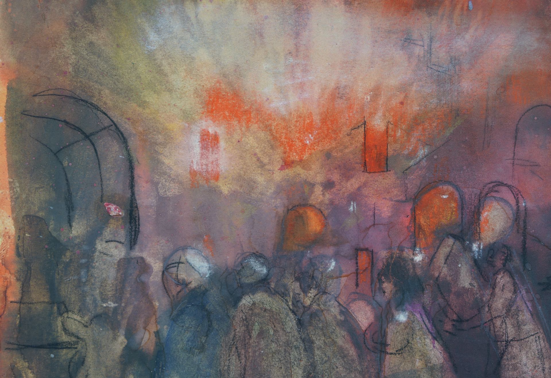 Herman Heijenbrock kunstwerk • aquarel • tekening • te koop De brand, Scheveningen