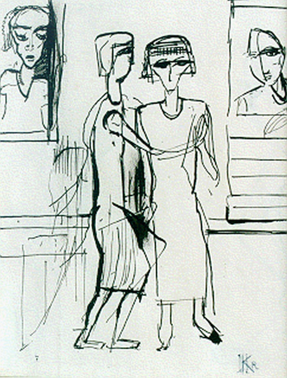 Herman Kruyder kunstwerk • aquarel • tekening • voorheen te koop Bezoek aan het museum verso: tekening met figuren
