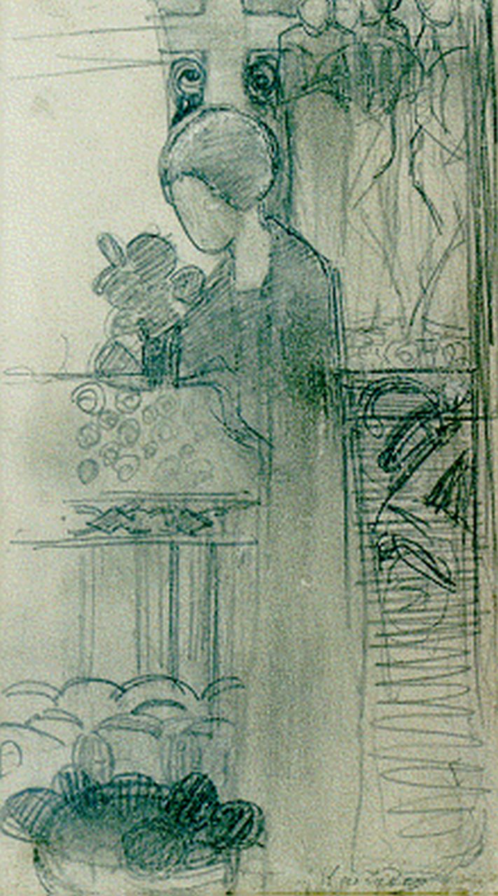 potlood op papier 18,7 x 10,8 cm, gesigneerd rechtsonder