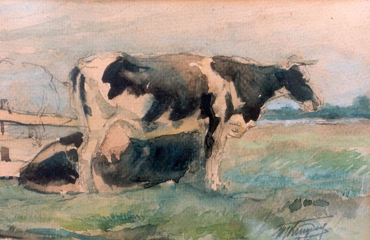 Herman Kruyder kunstwerk • aquarel • tekening • voorheen te koop Melkvee in de wei