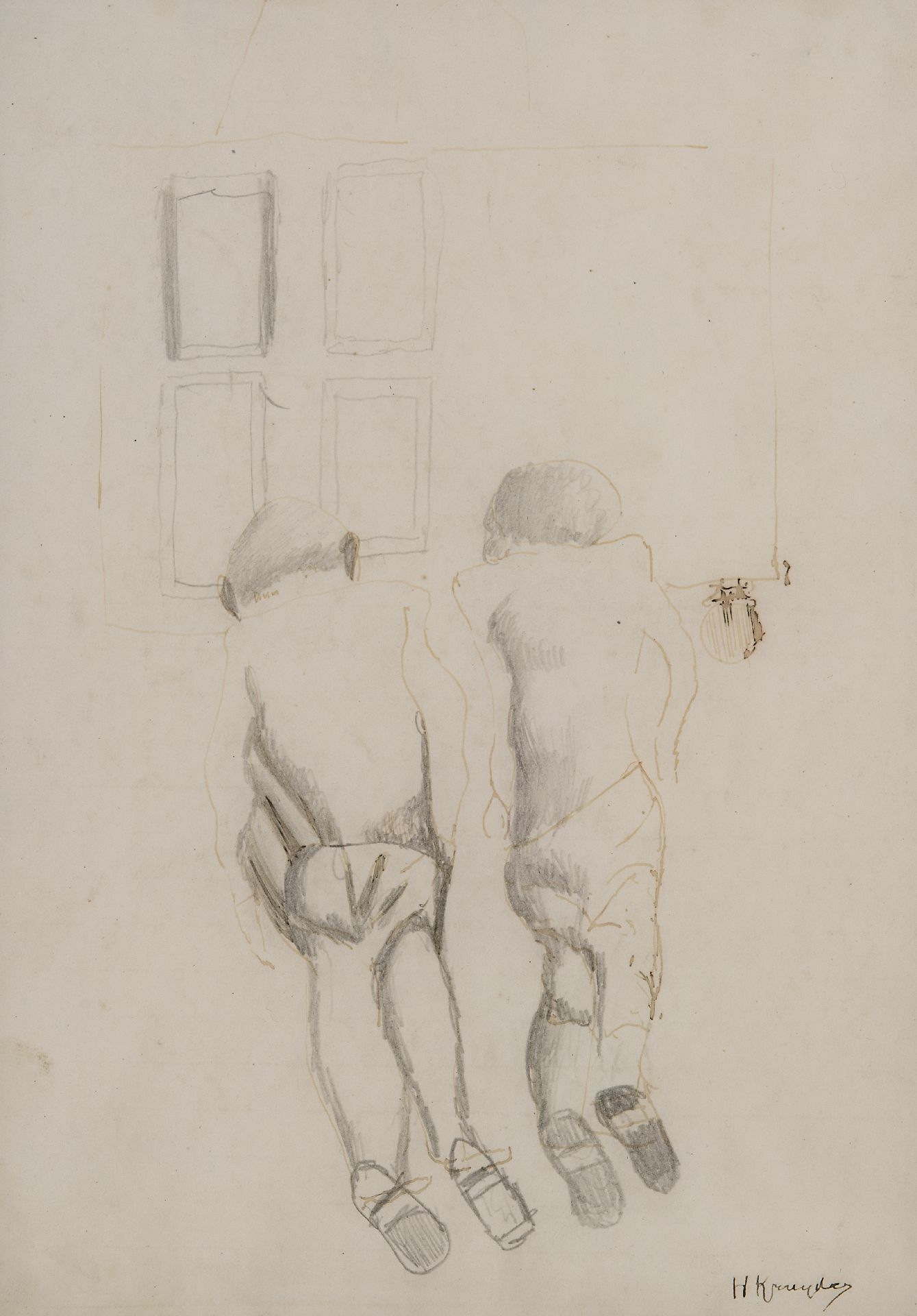 Herman Kruyder kunstwerk • aquarel • tekening • te koop Twee figuren