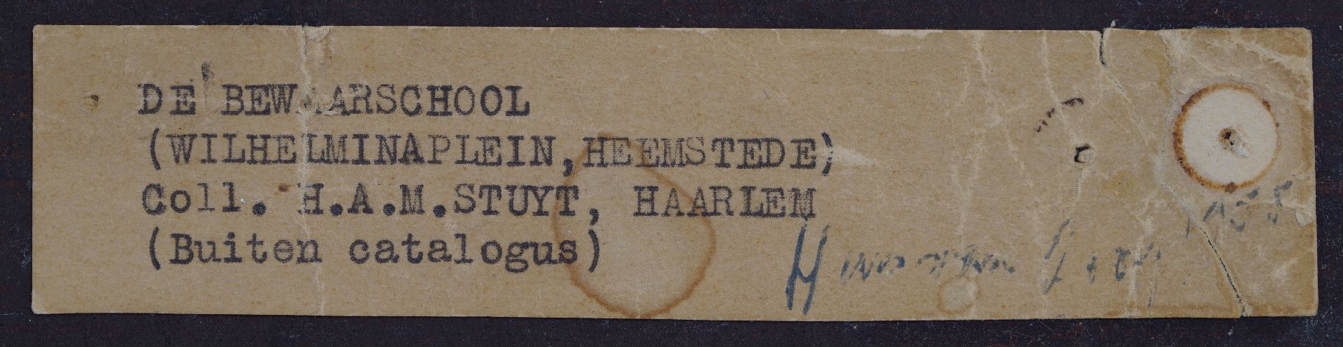 Oorspronkelijk voorbestemd om huisschilder te worden ontwikkelde Herman Kruyder zich tot een van de belangrijkste vertegenwoordigers van het expressionisme in Nederland. Hij schilderde niet meer de zichtbare werkelijkheid maar zijn innerlijk leven, en gebruikte daarvoor onderwerpen die hij ontleende aan het landleven om hem heen: het dorp en de mensen, dieren en bloemen. Ook de portretten die hij schilderde staan los van de realiteit en getuigen van een diep, soms haast gekweld, innerlijk leven. In 1919 verhuisden Kruyder en zijn vrouw naar de Achterweg 26 in Heemstede, een nauw straatje achter de Oude Kerk in de nabijheid van tuinders en kwekers. Kruyder schilderde hier o.a. aardappelpoters en tuinarbeiders, maar ook dorpsgezichten zoals Het Bewaarschooltje. Het was het uitzicht dat de kunstschilder had als hij naar rechts uit het raam van zijn woonhuis keek. Links op het schilderij de protestante bewaarschool (Achterweg 17), in het midden de Oude Kerk en rechts daarvan het toenmalige woonhuis van stalhouder wed. J.G van Schagen (Achterweg 38). In dezelfde tijd maakte W.J. Dingemans een prent van het Wilhelminaplein, die een realistisch beeld geeft van het begin van de Achterweg. Kruyder schilderde een heel persoonlijke beleving van dit stukje Achterweg. Bron: Martin Bunnik, 'Kunstschilder Herman Justus Kruyder (1881-1935)', 'Heerlijk Heden. Tijdschrift over de geschiedenis van Heemstede en Bennebroek', 176 (2018).