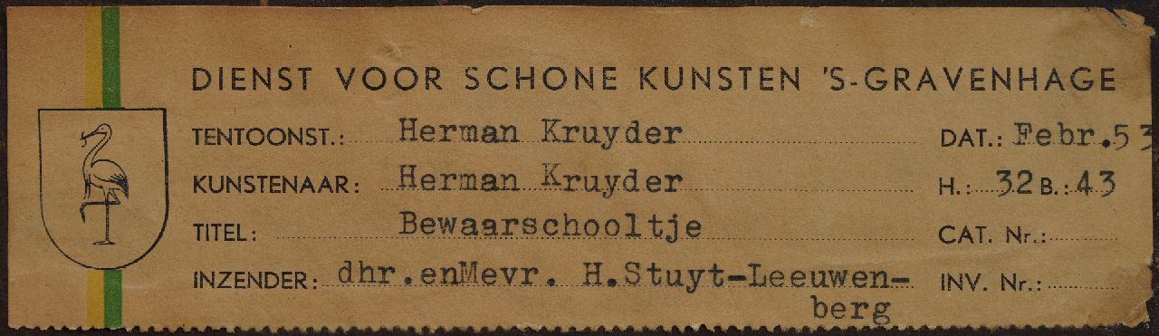 Herman Kruyder kunstwerk • schilderij • voorheen te koop Bewaarschooltje, Heemstede