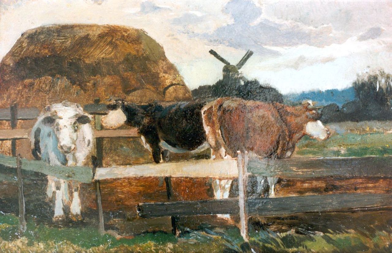 Herman Kruyder kunstwerk • schilderij • voorheen te koop Koeien in de melkbocht