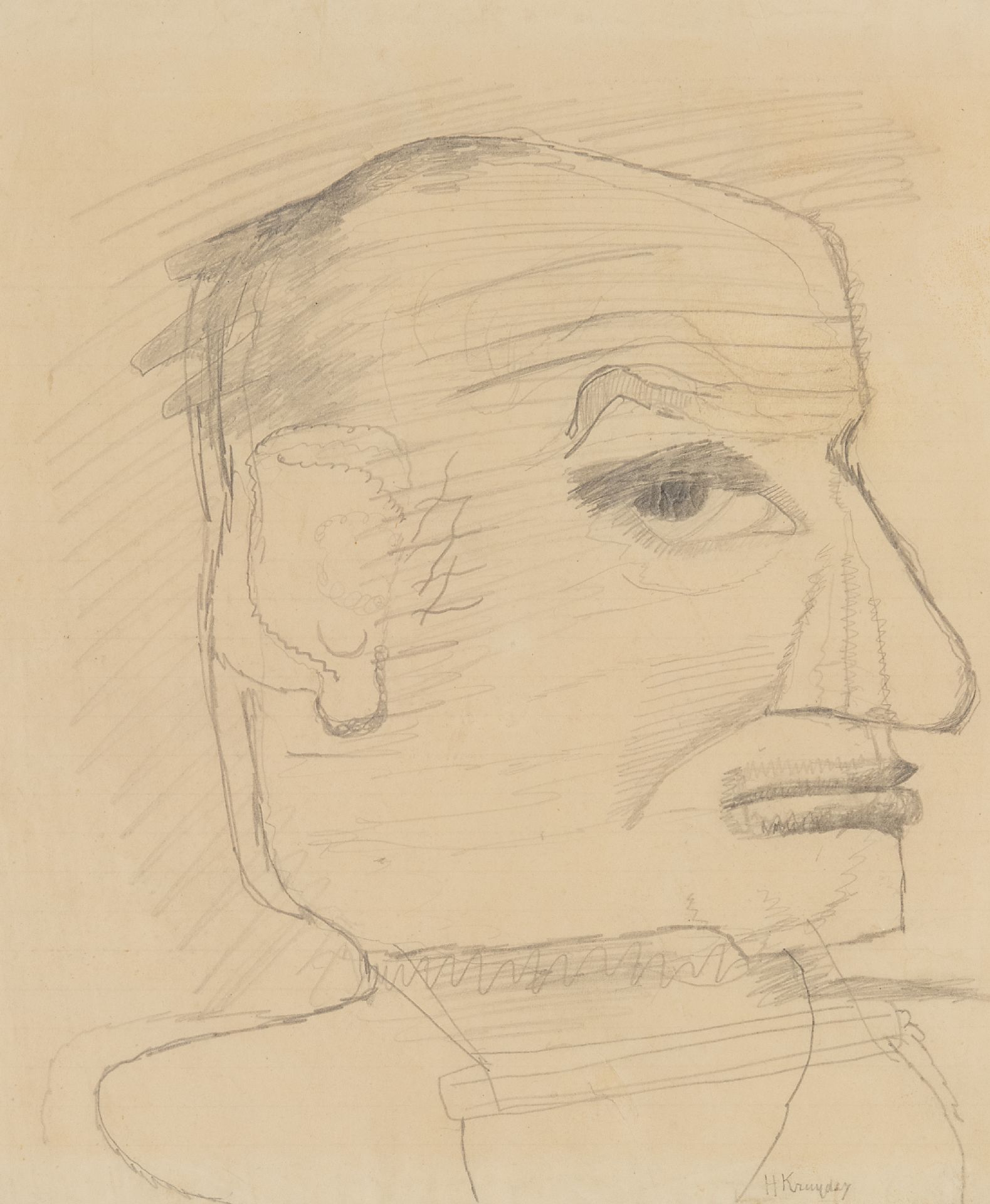Herman Kruyder kunstwerk • aquarel • tekening • te koop Mogelijk een zelfportret