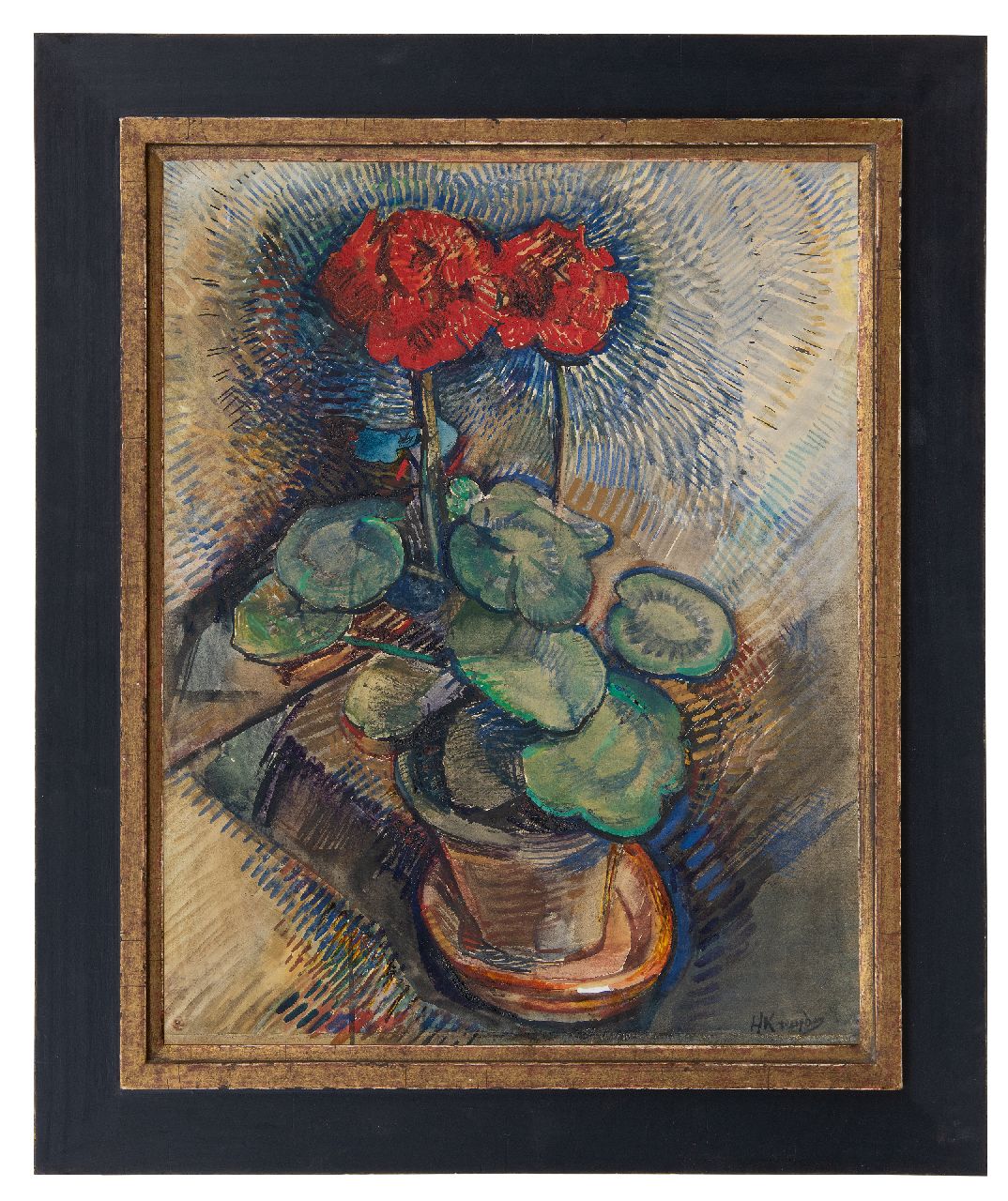 Herman Kruyder kunstwerk • aquarel • tekening • te koop Rode geranium