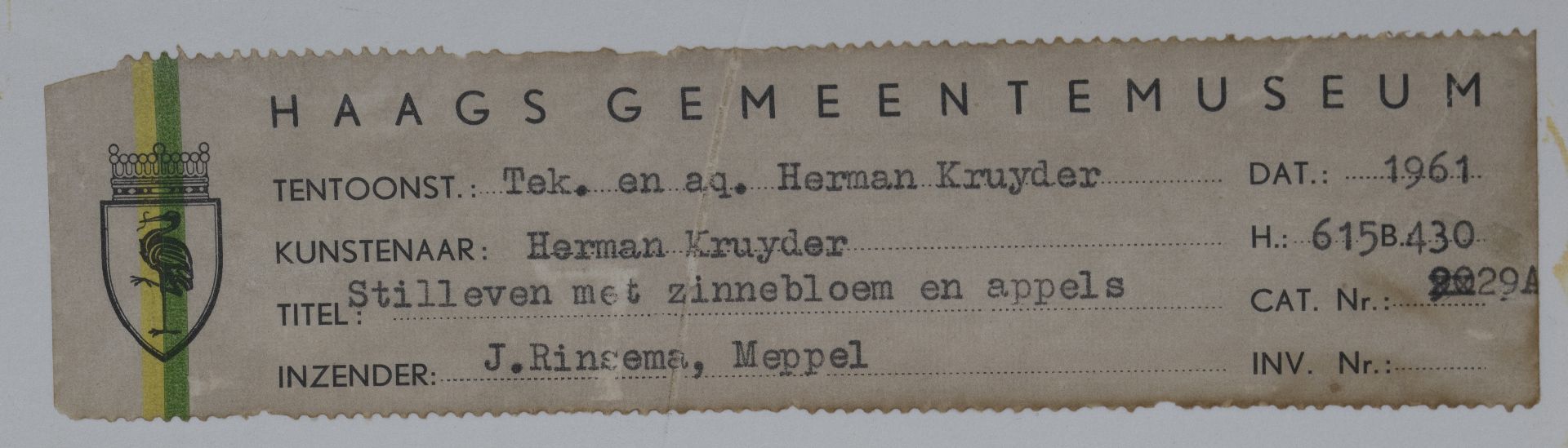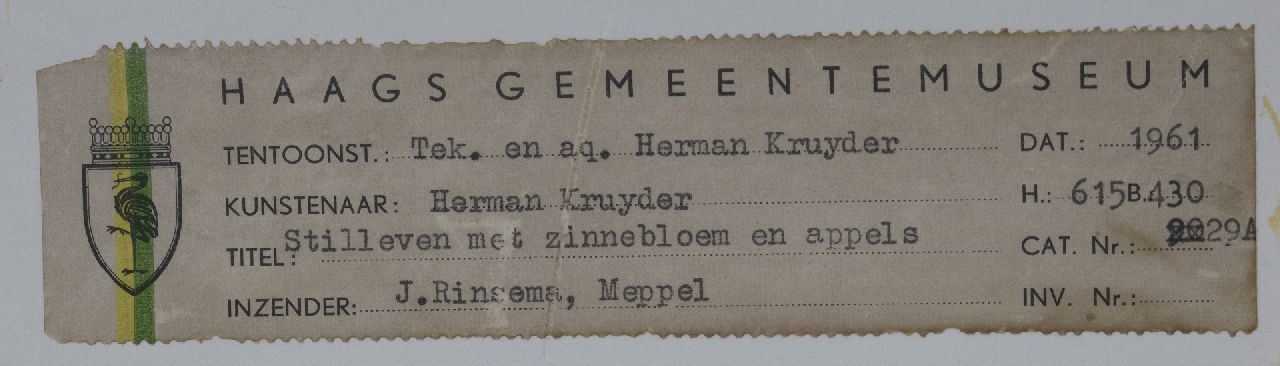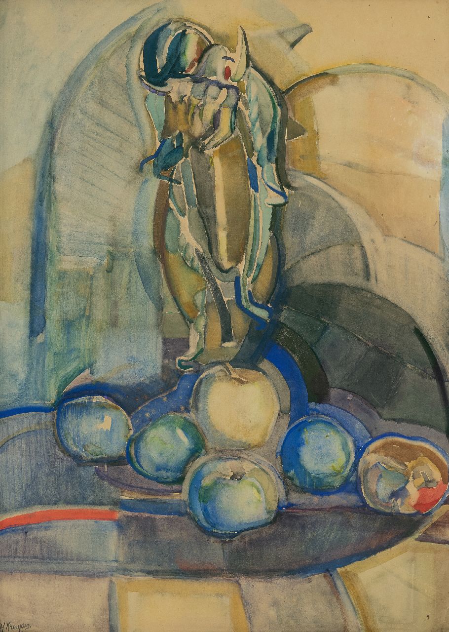 Herman Kruyder kunstwerk • aquarel • tekening • voorheen te koop Stilleven met appels