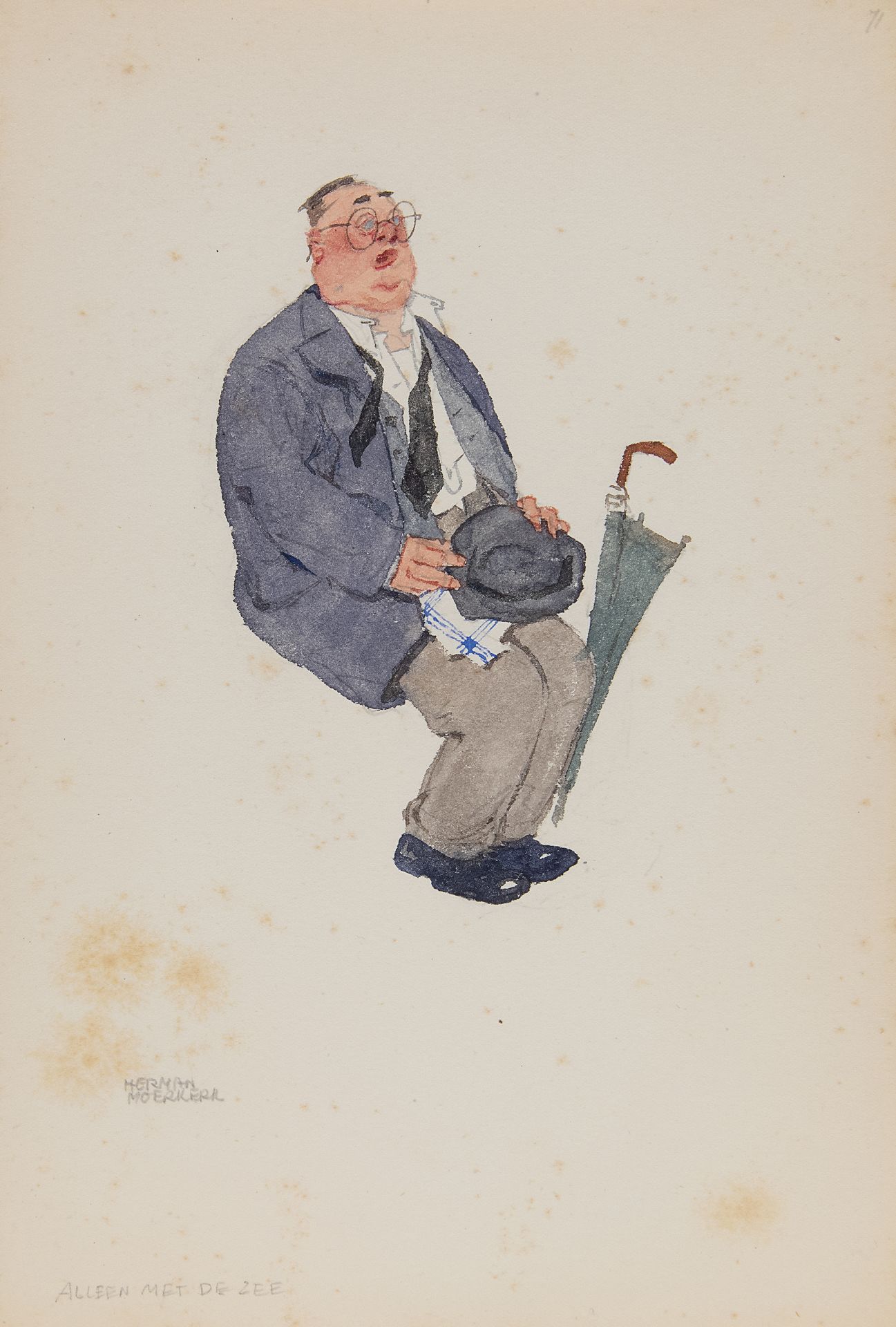 Herman Moerkerk kunstwerk • aquarel • tekening • te koop Alleen met de zee